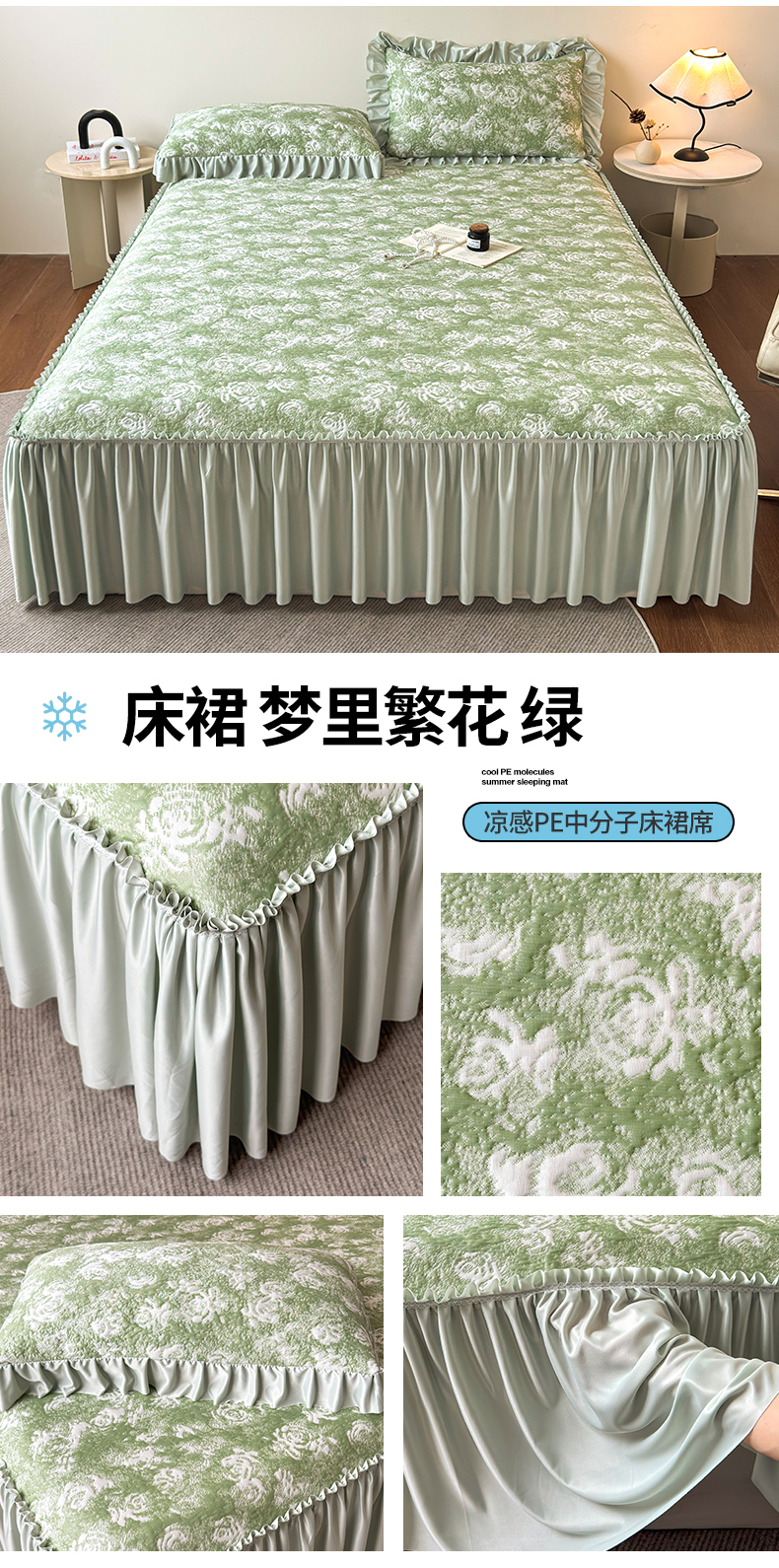 (总)柔品 2026春夏新款PE中分子床裙款凉席席子-梦里繁花,床裙 梦里繁花 粉,床裙 梦里繁花 蓝,床裙 梦里繁花 绿,床裙梦里繁花 灰