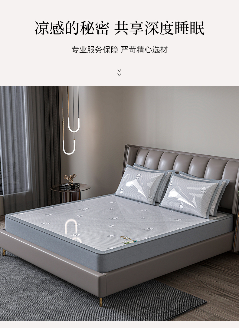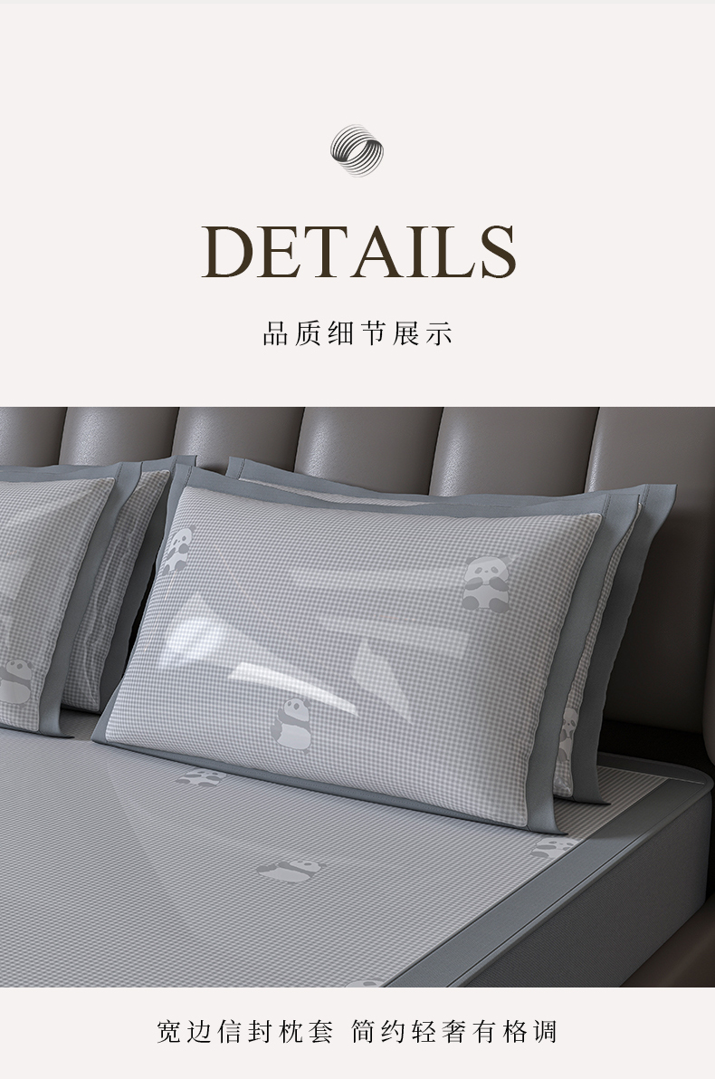 商品名称:(总)小牛席业 2026新款双PE高凉感-熊猫格纹提花冰丝席(床笠款)凉席竹席藤席冰藤席乳胶席豆豆席