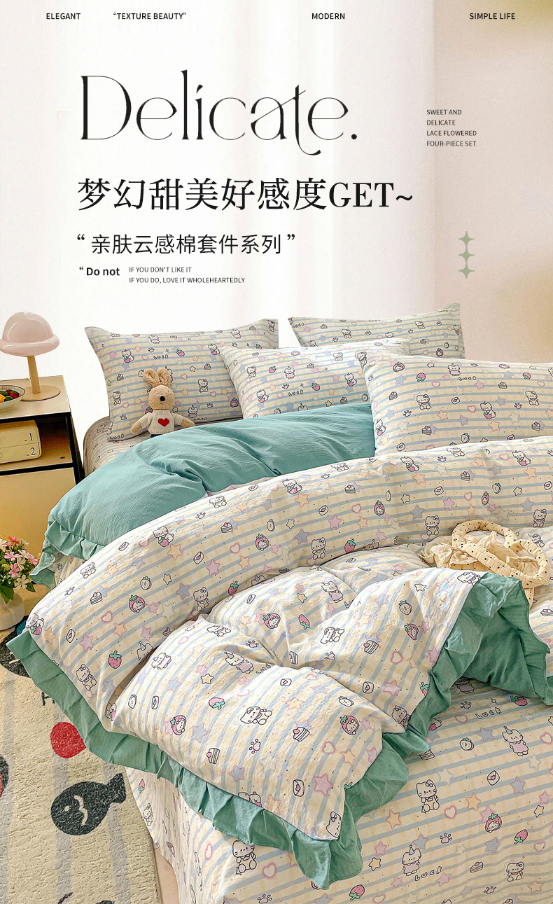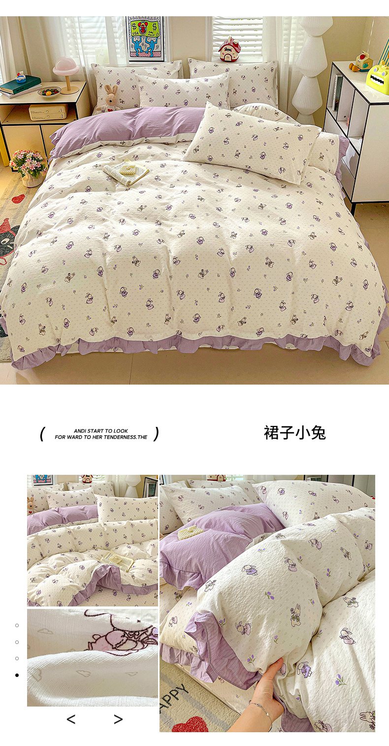 当前位置: 91家纺网 > 商品网购 > 床品套件 > 四件套 > 其它四件套 > 纽缦家纺 2026新款云感提花双层纱韩版床单三件套四件套 他和她的兔
