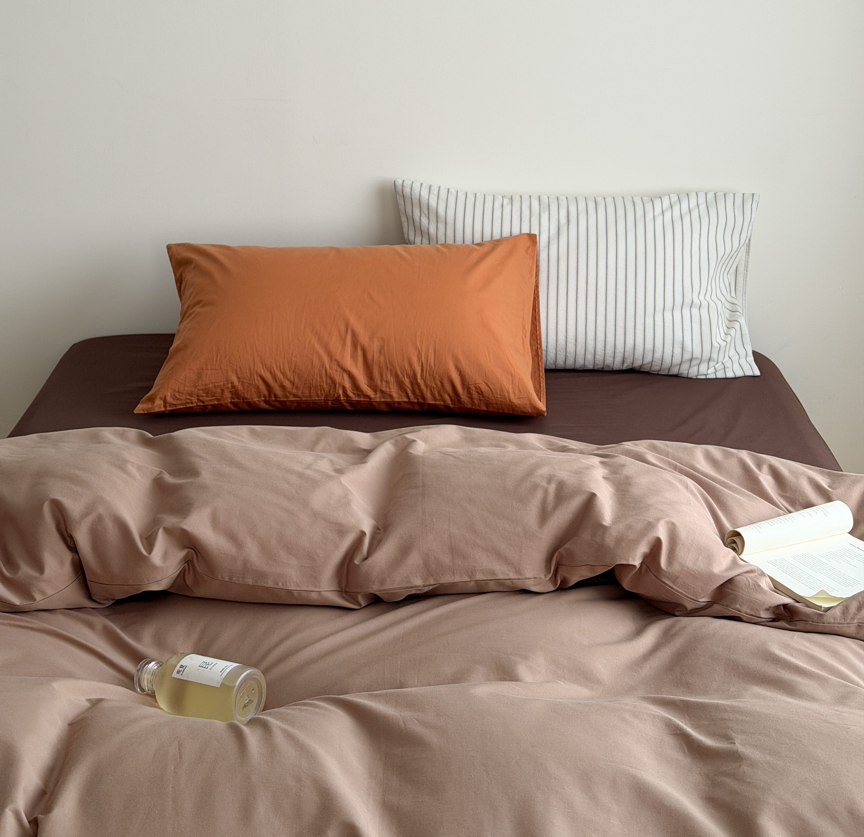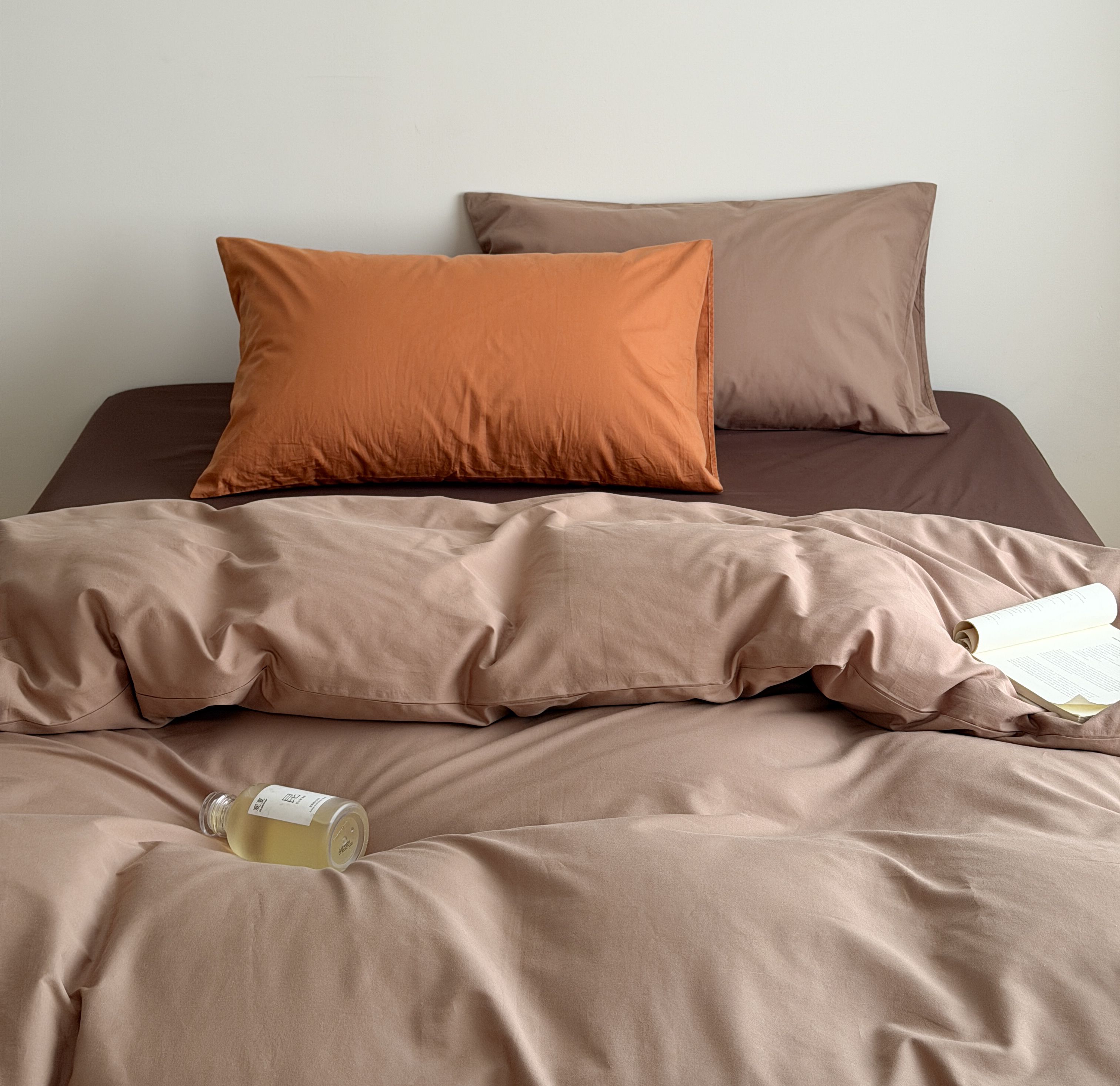 当前位置: 91家纺网 > 商品网购 > 床品套件 > 四件套 > 全棉普通四件套 > 蜜宿 2026新款纯色混搭全棉纯棉40s水洗棉四件套 脏脏茶棕(枕套黑黄竖条+可可棕)
