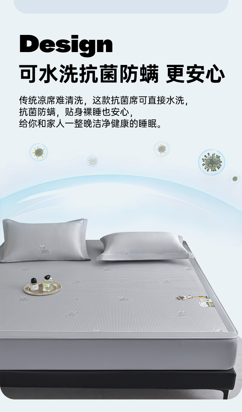 (总)小牛席业 2026新款小冰块大象凉感冰丝席凉席竹席藤席冰藤席乳胶席豆豆席,粉色,香槟,灰色,绿色,蓝色