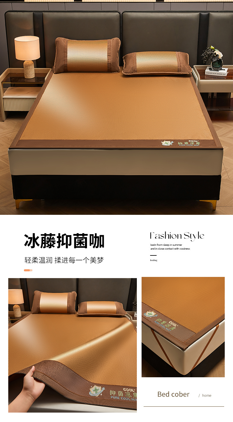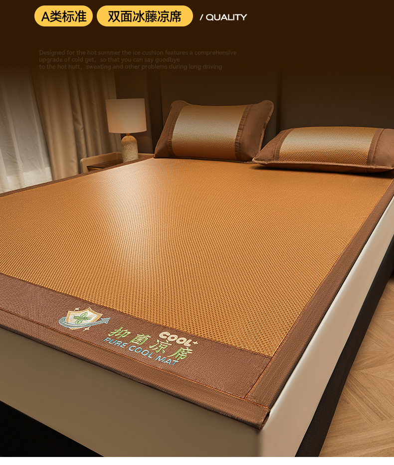当前位置: 91家纺网 > 商品网购 > 床上用品 > 凉席 > 藤席 > 绒艺席业 2026新款A类双面冰藤抑菌凉席 冰藤抑菌咖