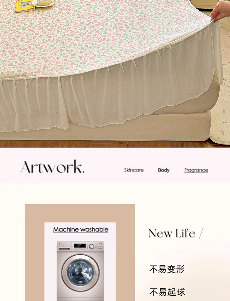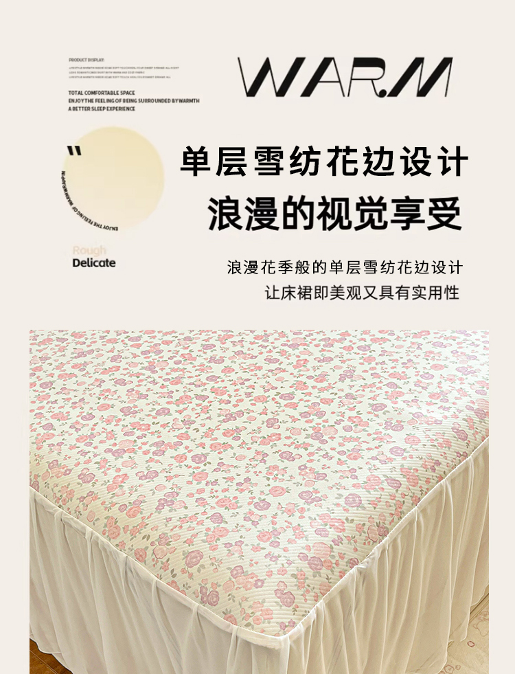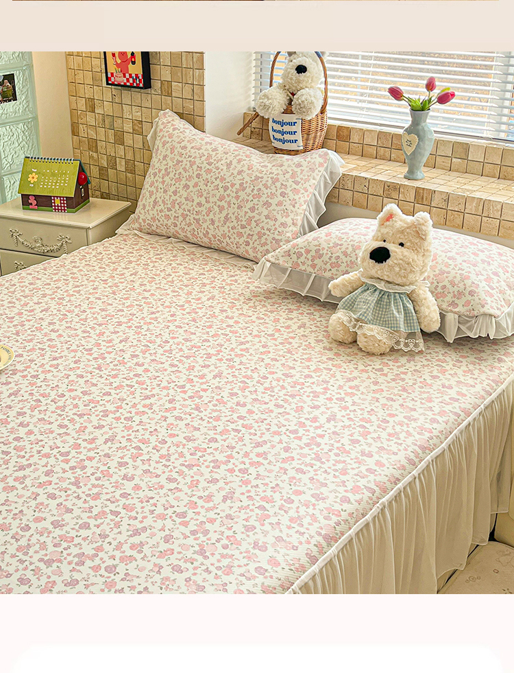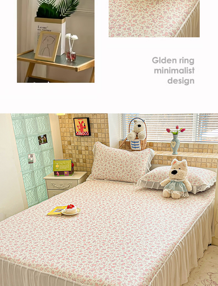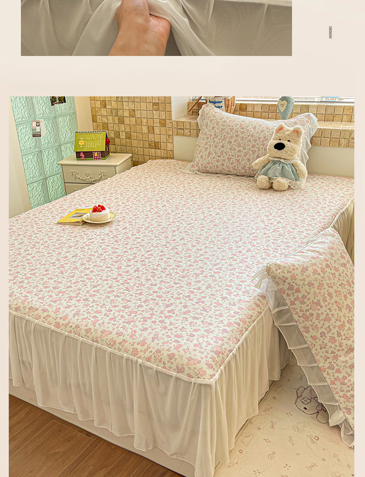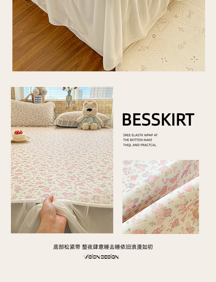 商品名称:川悦生活 2026新款雪纺冰丝床裙凉席三件套 床裙清新花芋