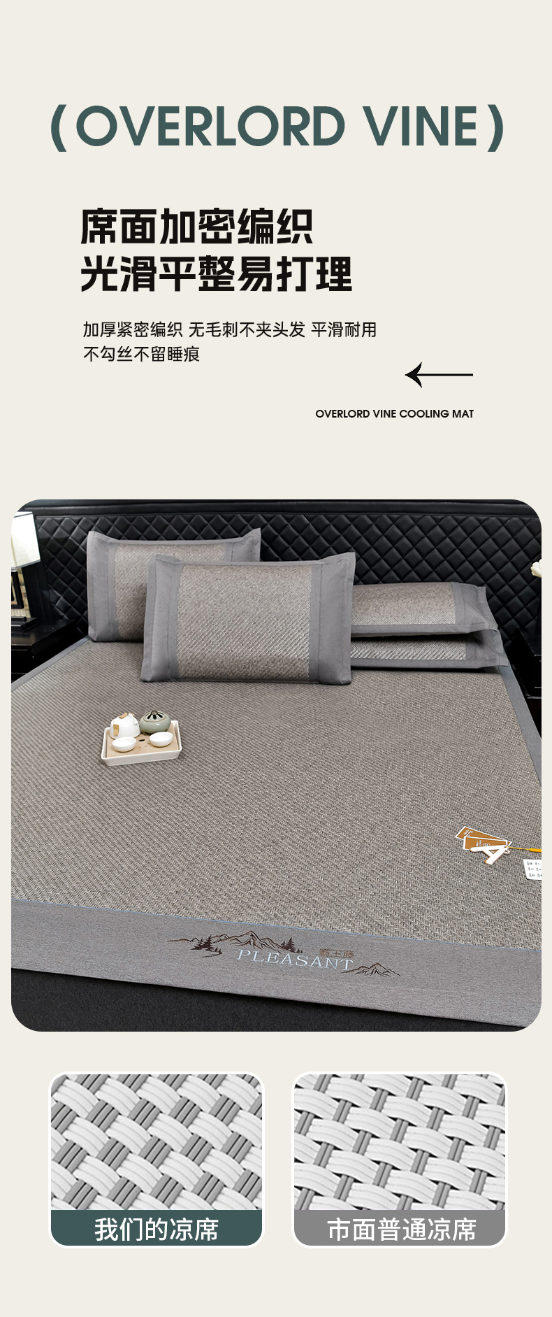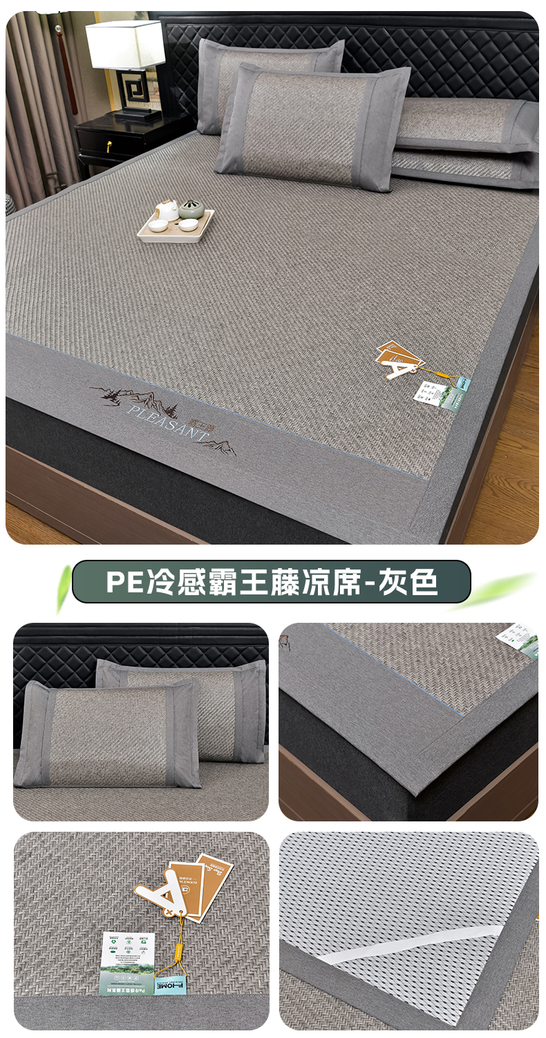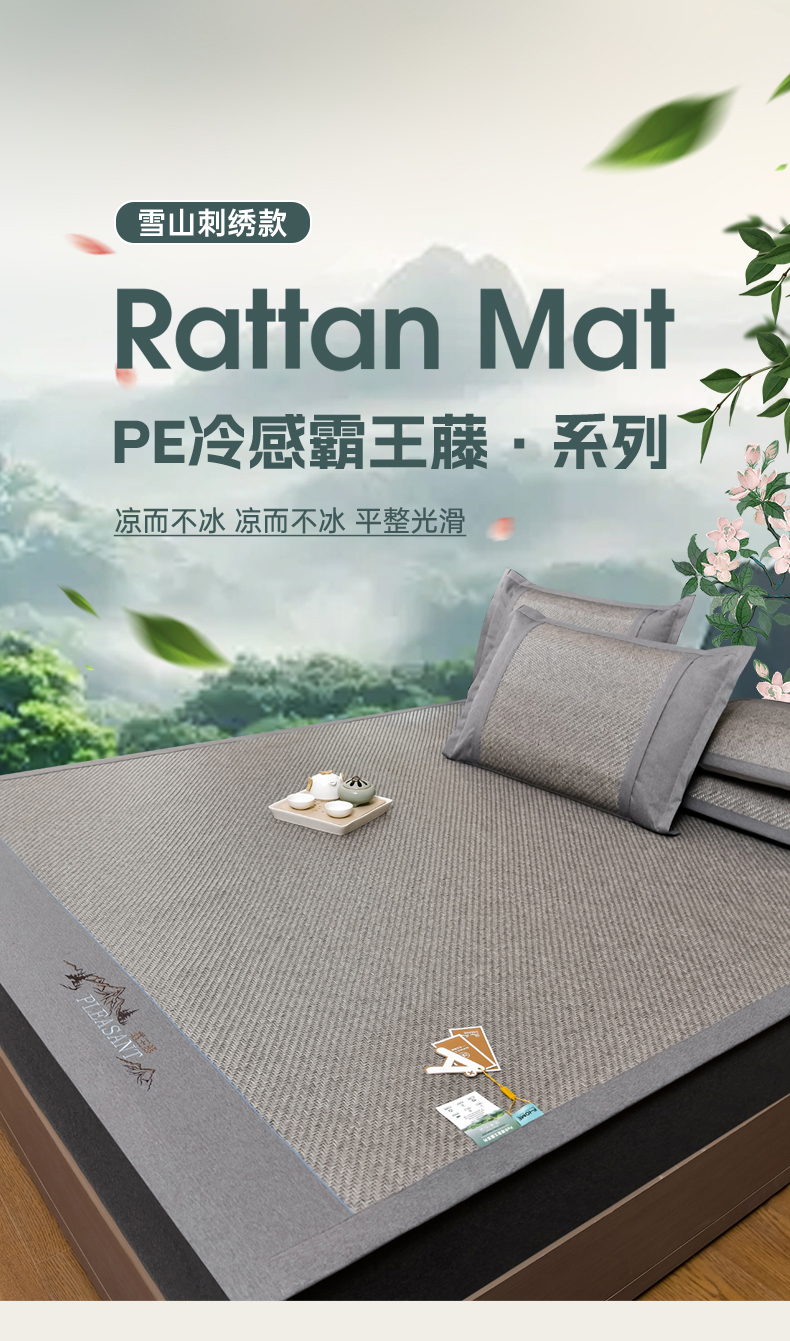 当前位置: 91家纺网 > 商品网购 > 床上用品 > 凉席 > 藤席 > 小牛席业 2026新款PE冷感霸王藤系列(雪山刺绣款)凉席藤席冰藤席冰丝席草席竹席乳胶席凉感豆豆席 灰色
