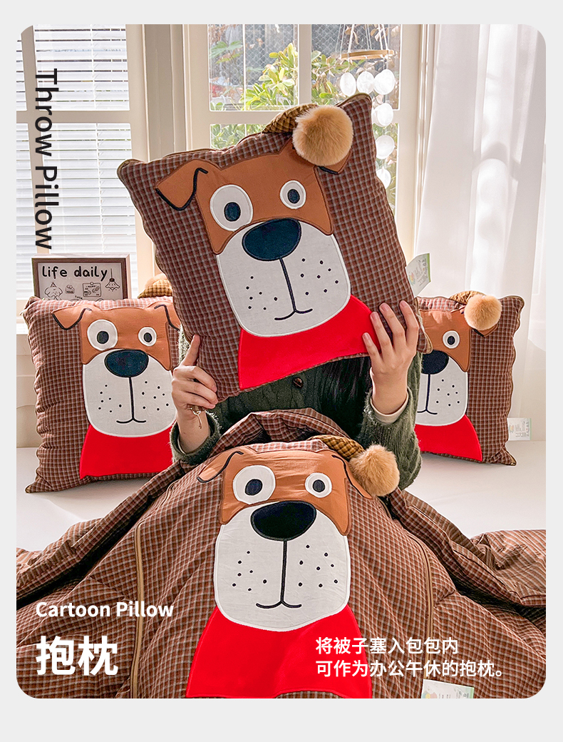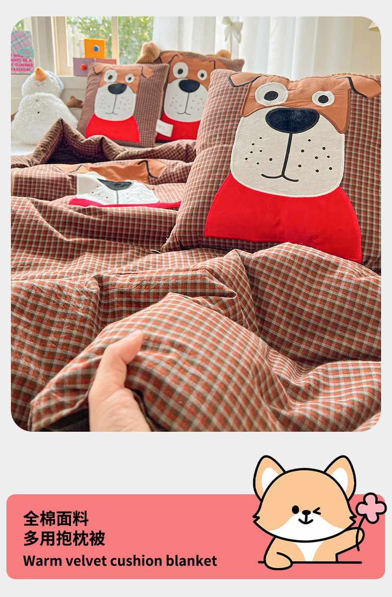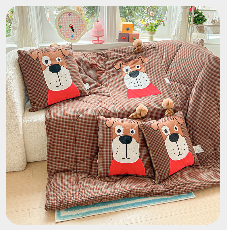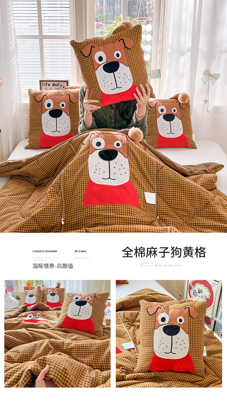 商品名称:(总)古本家居 2026新款全棉贴布绣麻子狗抱枕被系列