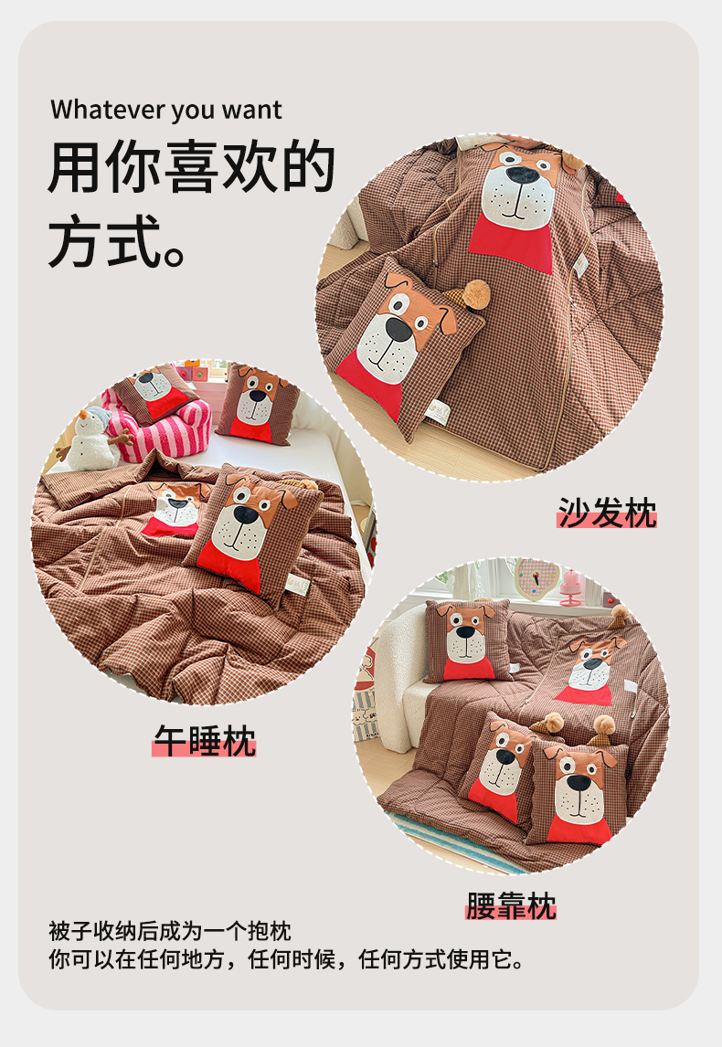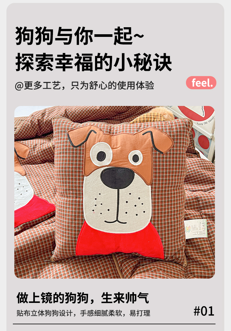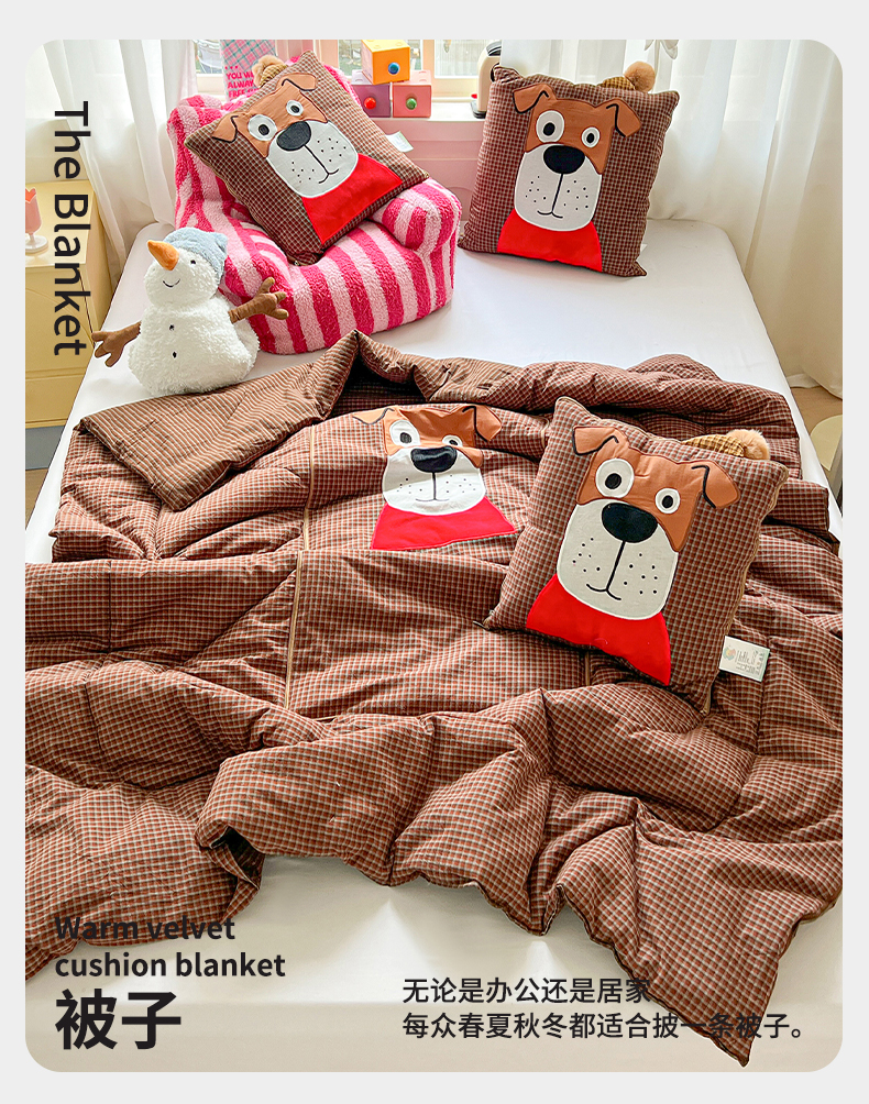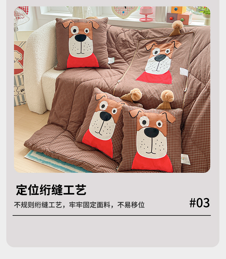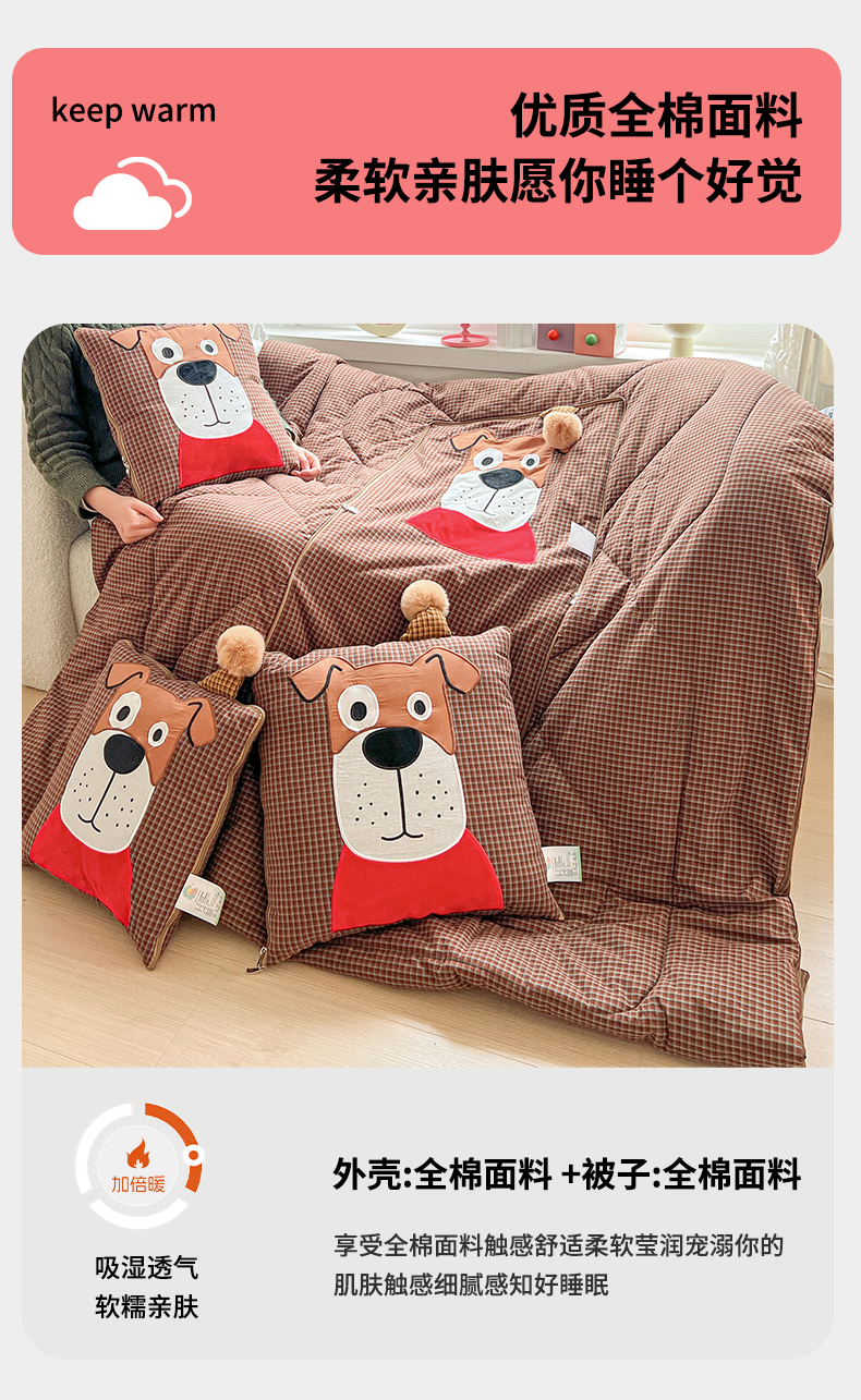 商品名称:(总)古本家居 2026新款全棉贴布绣麻子狗抱枕被系列