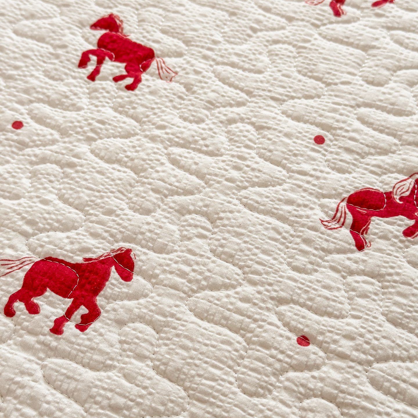 商品名称:雅眠居 2026直播爆款泡芙棉双层蕾丝花边床盖四件套 红色小马
