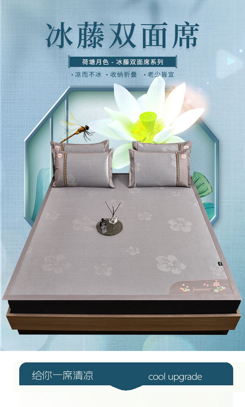 商品名称:娜朵家纺 2026新款荷塘月色冰藤双面席-床席款 荷塘月色提花金
