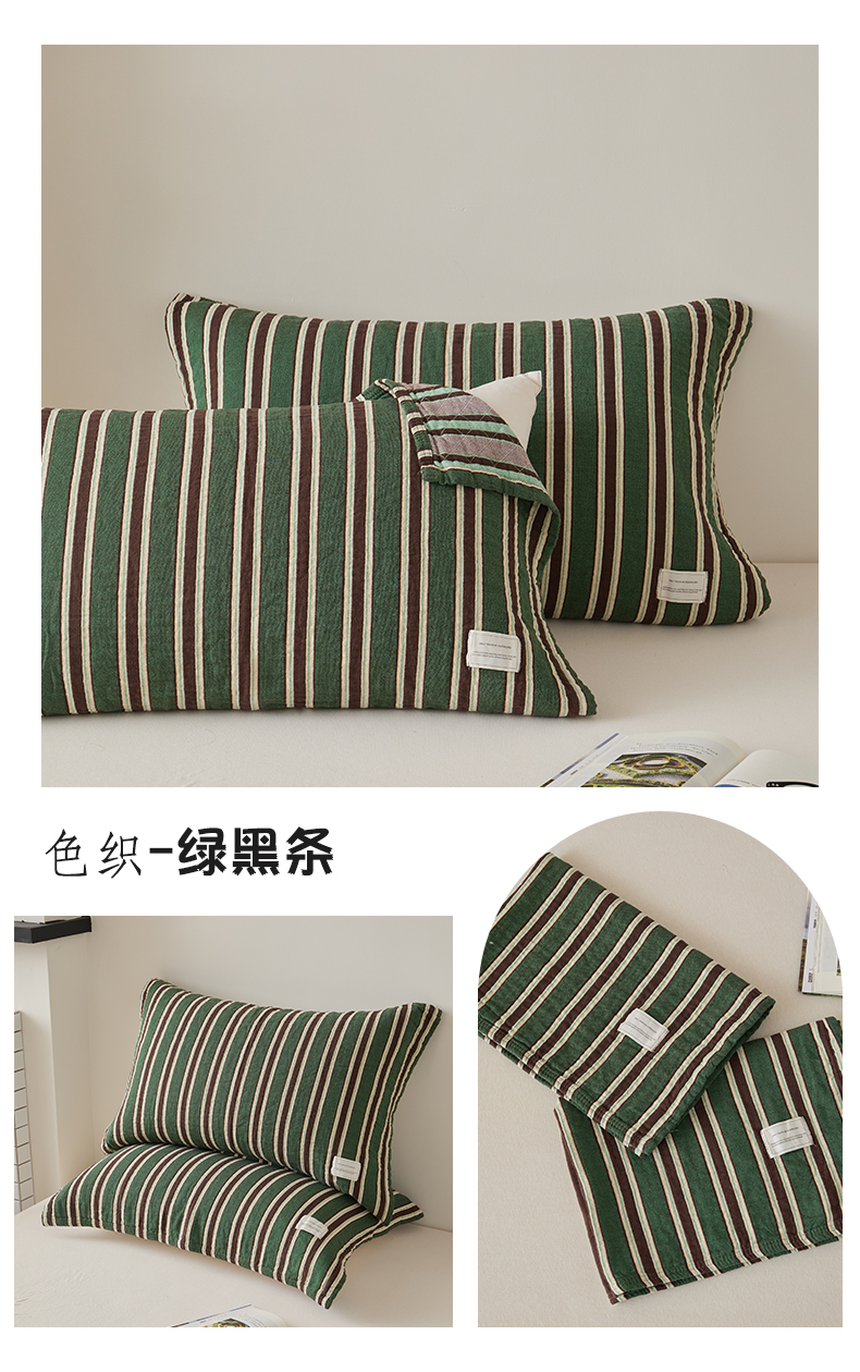 商品名称:百寐 2026年3月全棉A类色织枕巾52*75条纹格子美拉德色系纯棉吸汗枕巾 色织-绿格