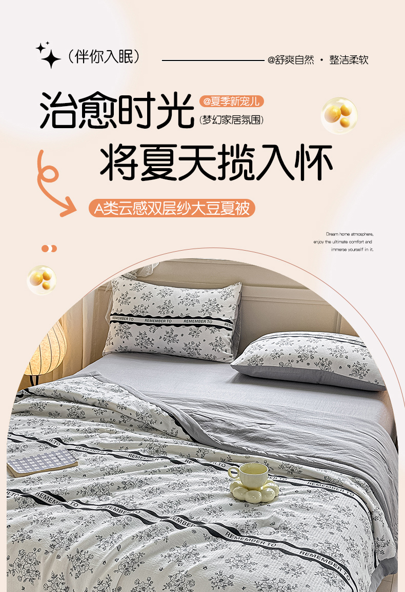 (总)秋泽家纺 2026新款A类云感双层纱大豆纤维夏凉被空调被小清新印花夏被,百福田园,花漾KT,蓝境兔语,绿境花影,美好时光,墨染春枝,奶糯粉喵,南瓜小格,浅粉花信,桃心条纹,甜梦奶心,小蓝狗,治愈星仔,紫雾蔷薇,组合图仅供展示不可下单