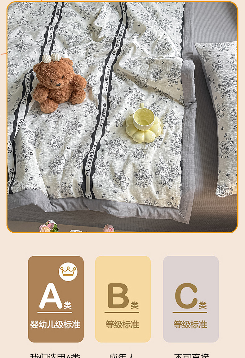 (总)秋泽家纺 2025新款皱皱纱提花子母被被子被芯,米白,浅灰,浅咖