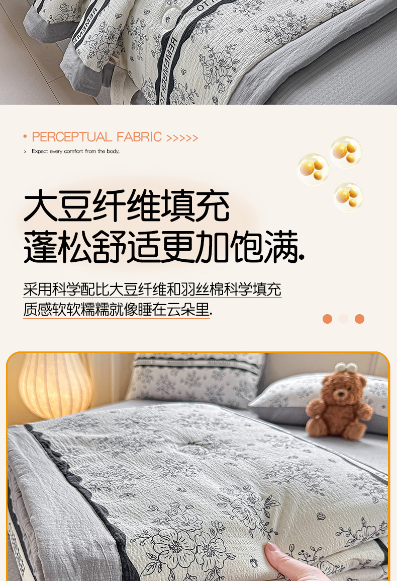 (总)秋泽 2025新款皱皱纱大豆被冬被春秋被夏被子被芯,奶白,浅灰,浅咖