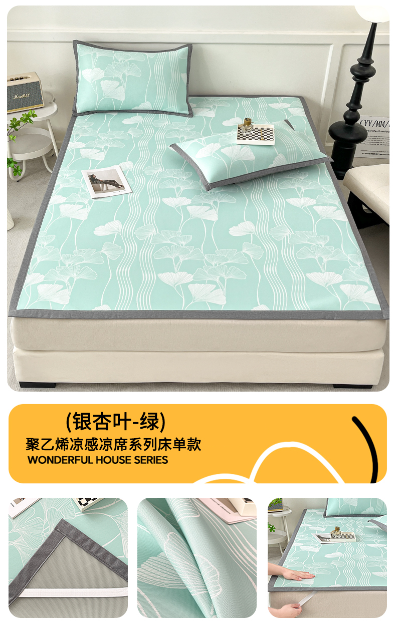 子曰 2026新款高分子PE聚乙烯乙纶色织提花凉感软凉席席子 银杏叶-绿平铺款