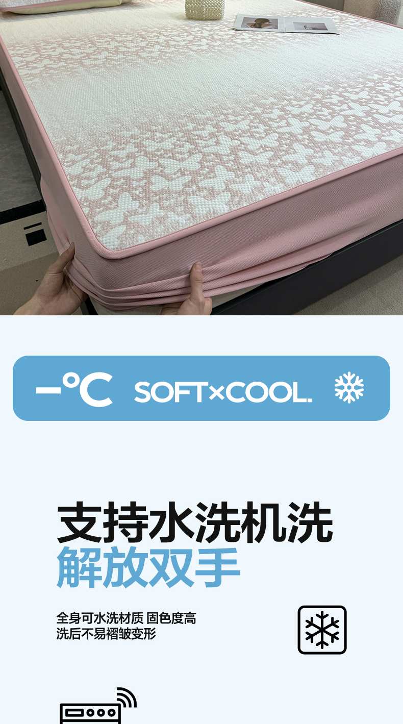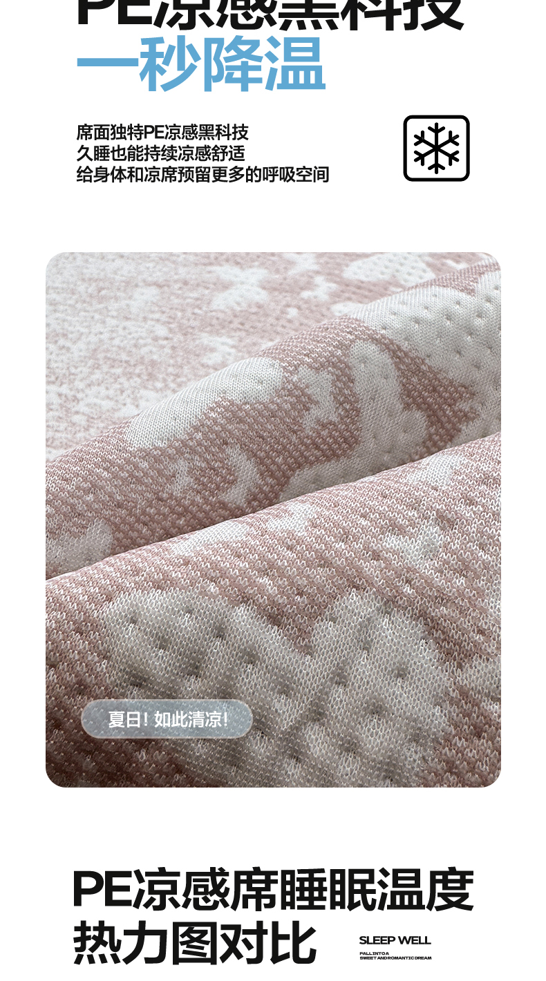 商品名称:(总)伊人坊 2026新款A类550克凉感提花值过0.21冰豆豆家用凉席子三件套夏季---床笠款