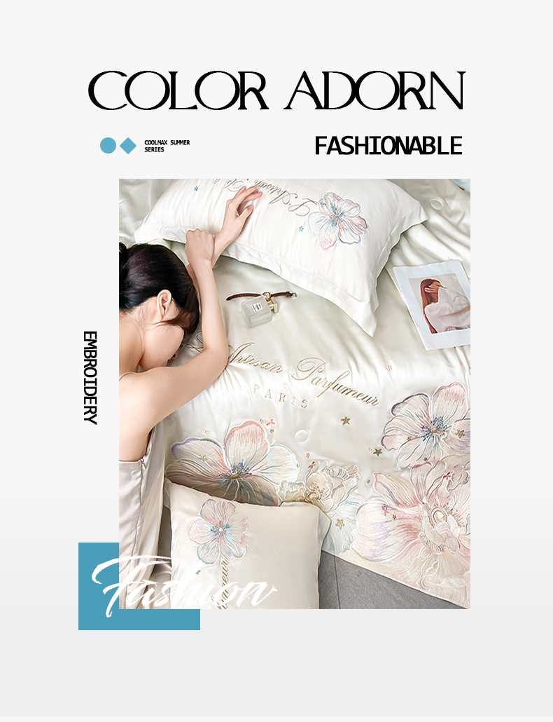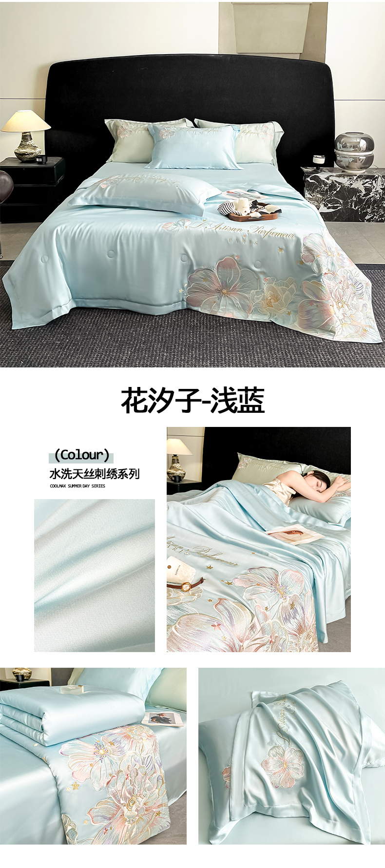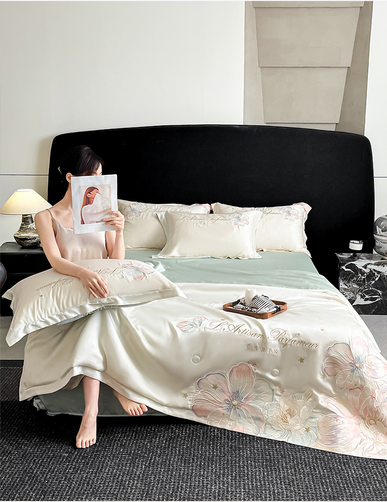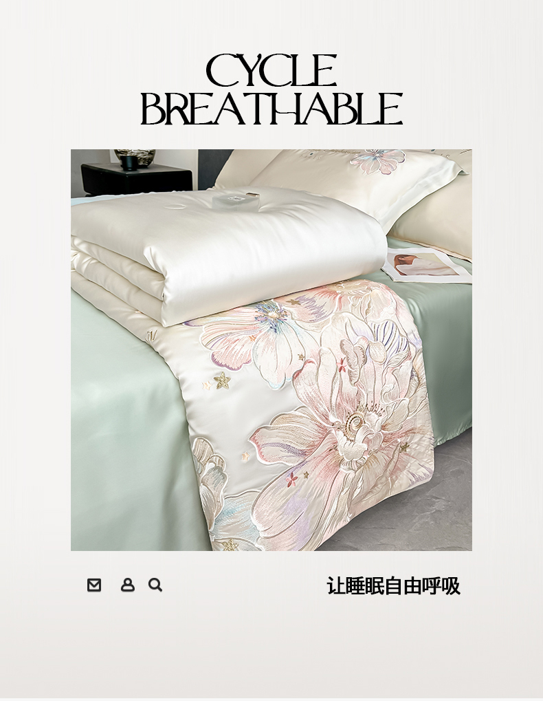 当前位置: 91家纺网 > 商品网购 > 床品套件 > 四件套 > 夏被四件套 > 置顶家纺 2026新款水洗天丝夏被四件套-花汐子 花汐子-白+繁星蓝