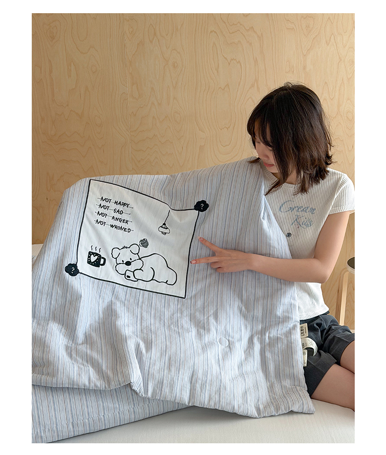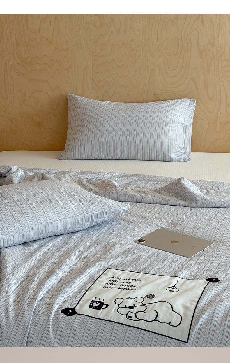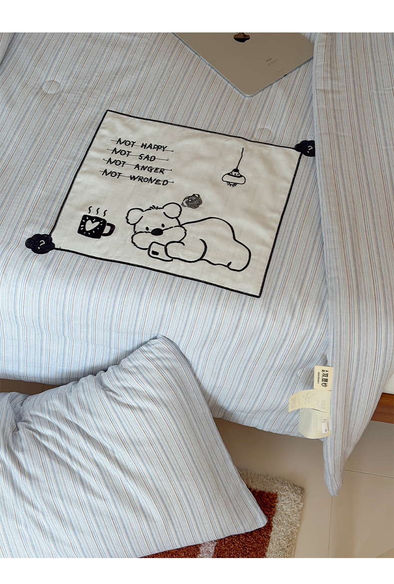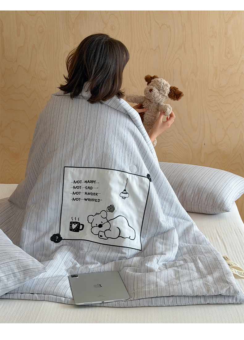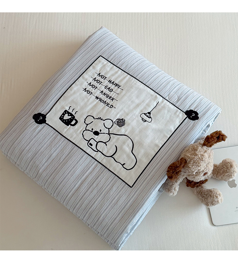 商品名称:一加一 2026新款全棉纯棉双层纱贴布绣大豆夏被夏凉被空调被-格格乐园 雾蓝熊语