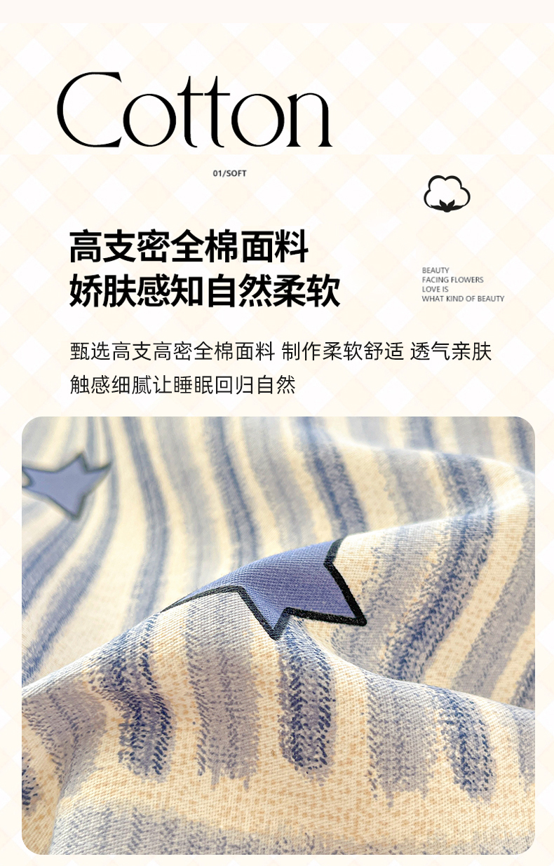 当前位置: 91家纺网 > 商品网购 > 床上用品 > 被套 > 莱通家纺 2026春夏新款12868全棉印花四件套单品系列二-单被套提供买家秀,预留缩水率) 条纹萌星