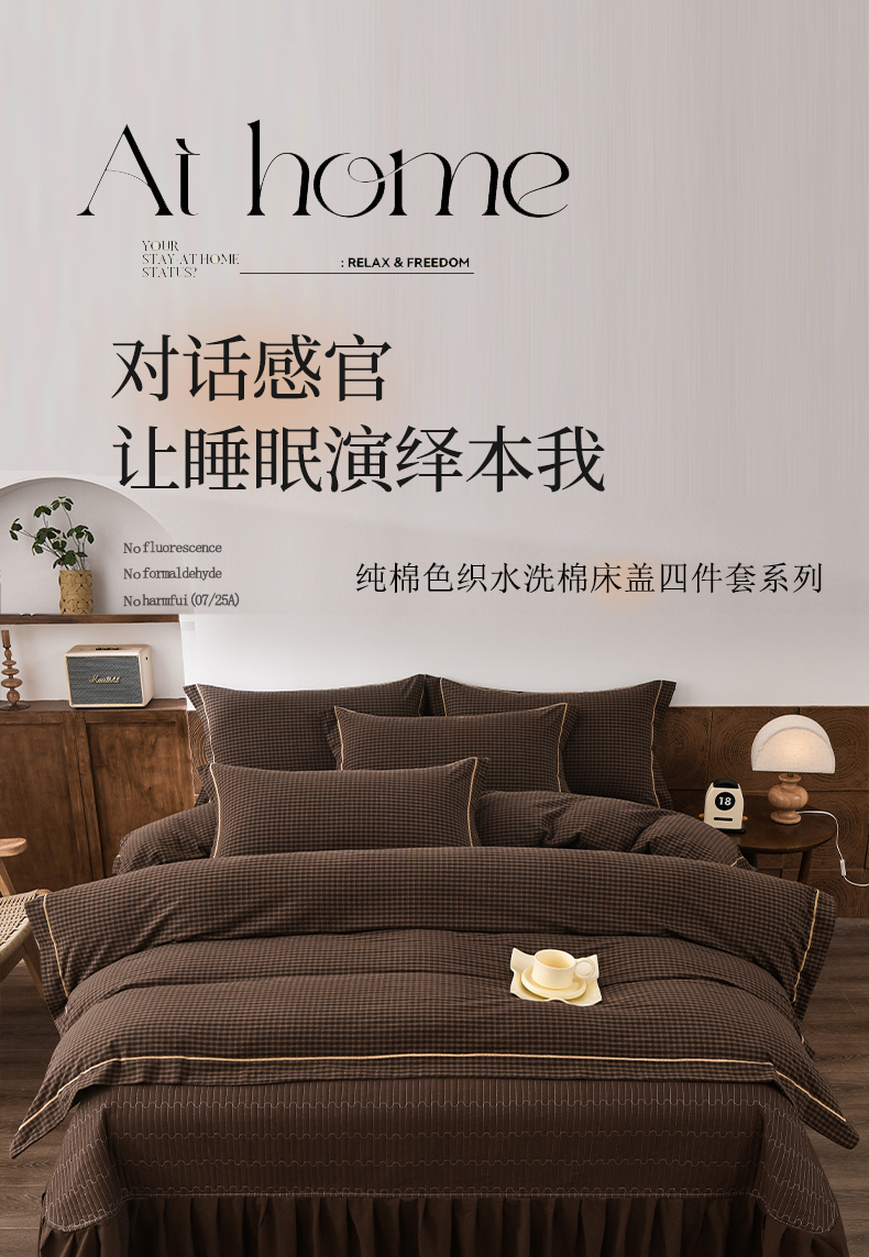 金艾草 2026春夏新款全棉纯棉色织水洗棉床盖四件套 关山月-咖