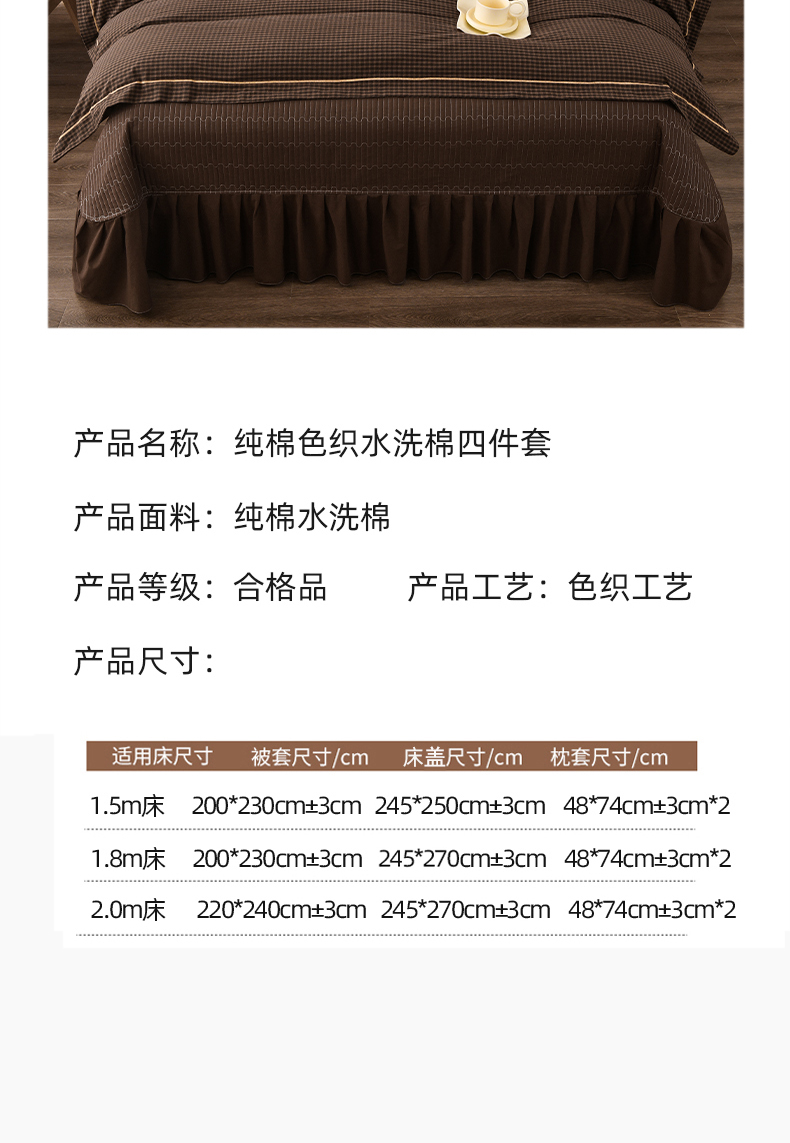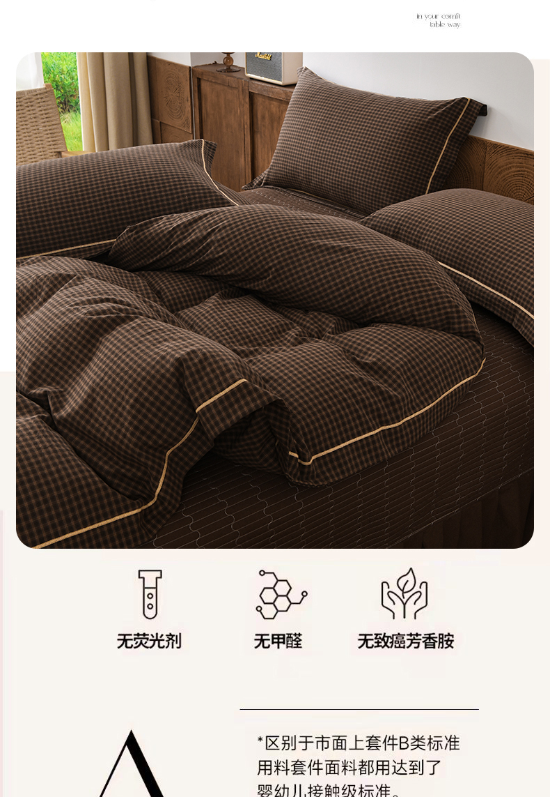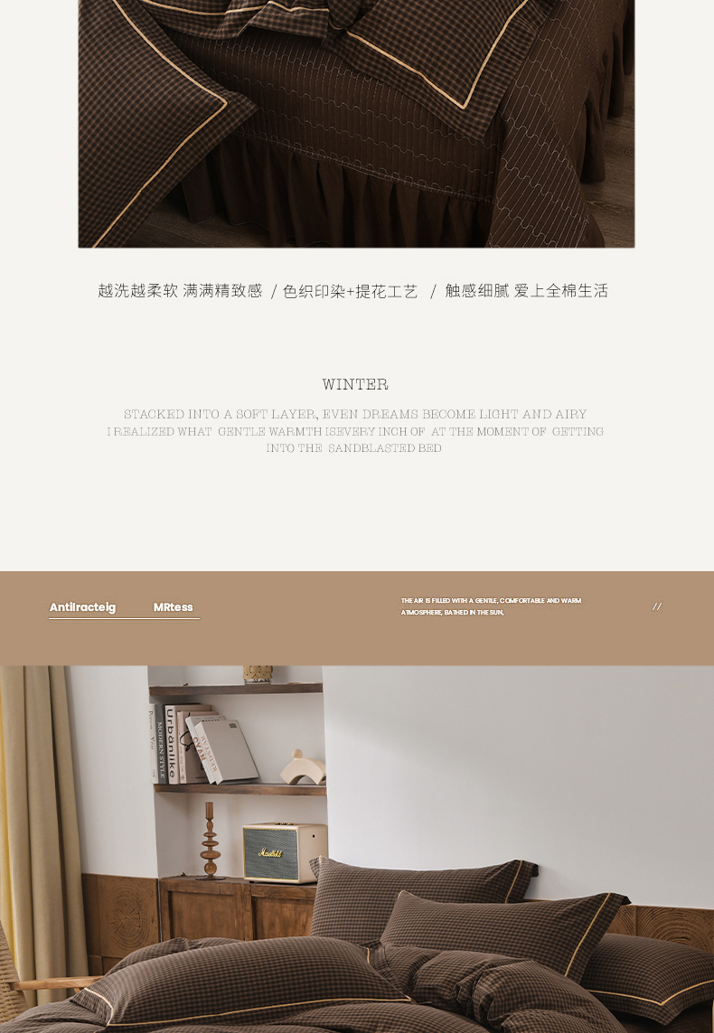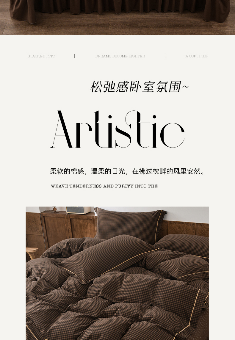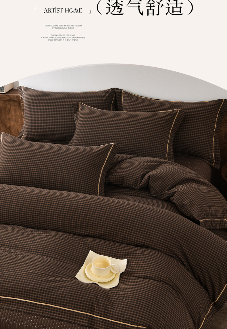 商品名称:金艾草 2026春夏新款全棉纯棉色织水洗棉床盖四件套 关山月-咖