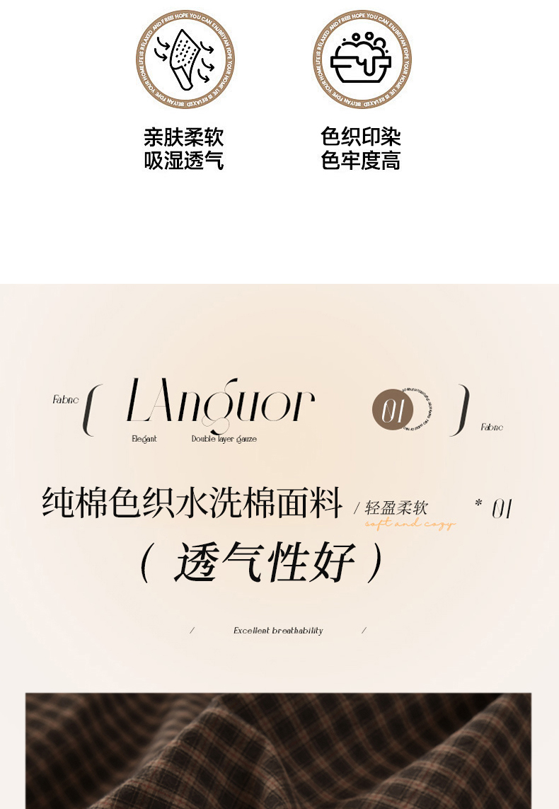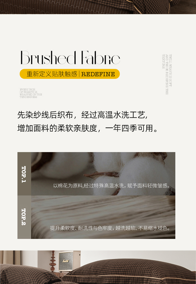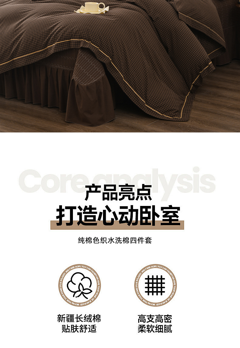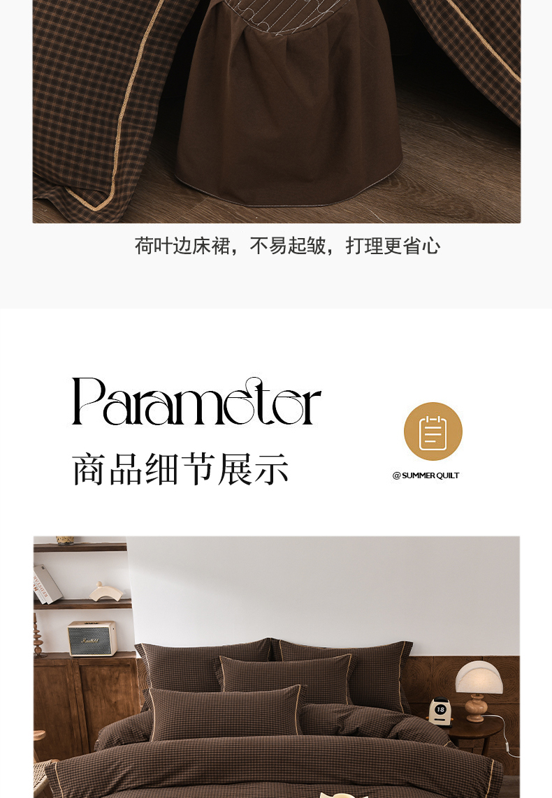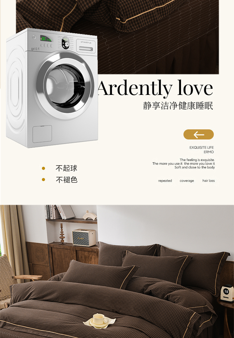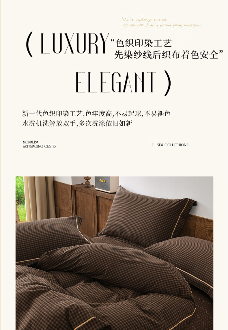 商品名称:金艾草 2026春夏新款全棉纯棉色织水洗棉床盖四件套 关山月-咖