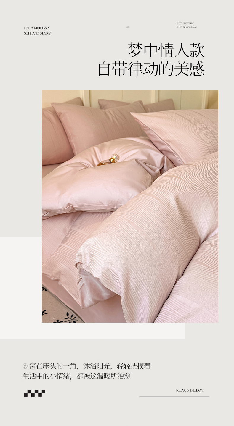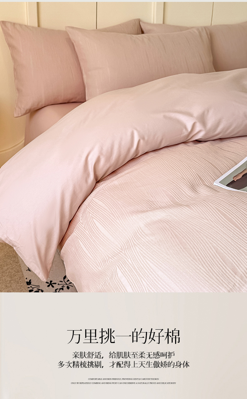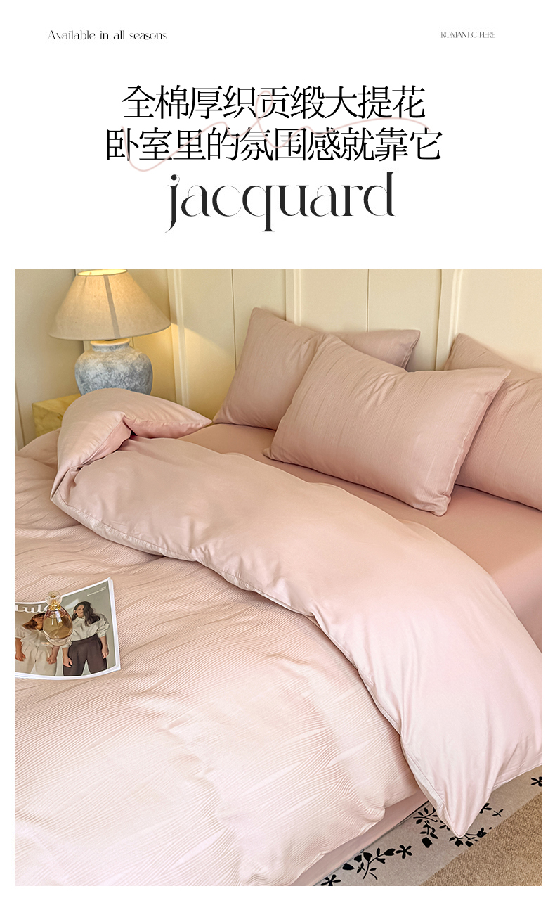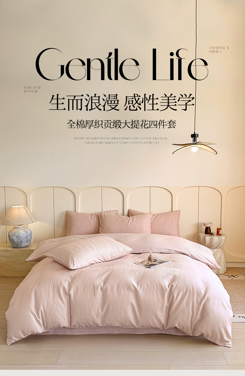 当前位置: 91家纺网 > 商品网购 > 床品套件 > 四件套 > 全棉普通四件套 > 灰鲸 2026新款全棉纯棉厚织贡缎大提花四件套 素柏-蜜春粉