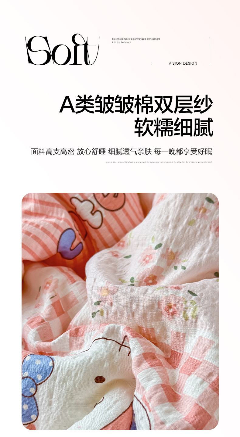 当前位置: 91家纺网 > 商品网购 > 床品套件 > 四件套 > 其它四件套 > 瑞禾家纺 2026新款皱皱棉双层纱夏被四件套下载文件包含买家秀 花间喵语