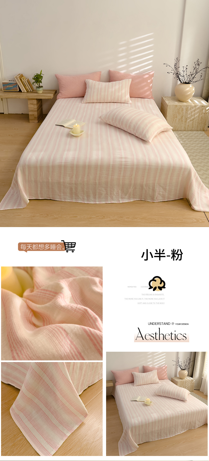 • 91家纺网 家纺一手货源 找家纺 DoDo 兜兜 2026年全棉纯棉A类色织皱皱纱床单单件 单床单 小半-粉