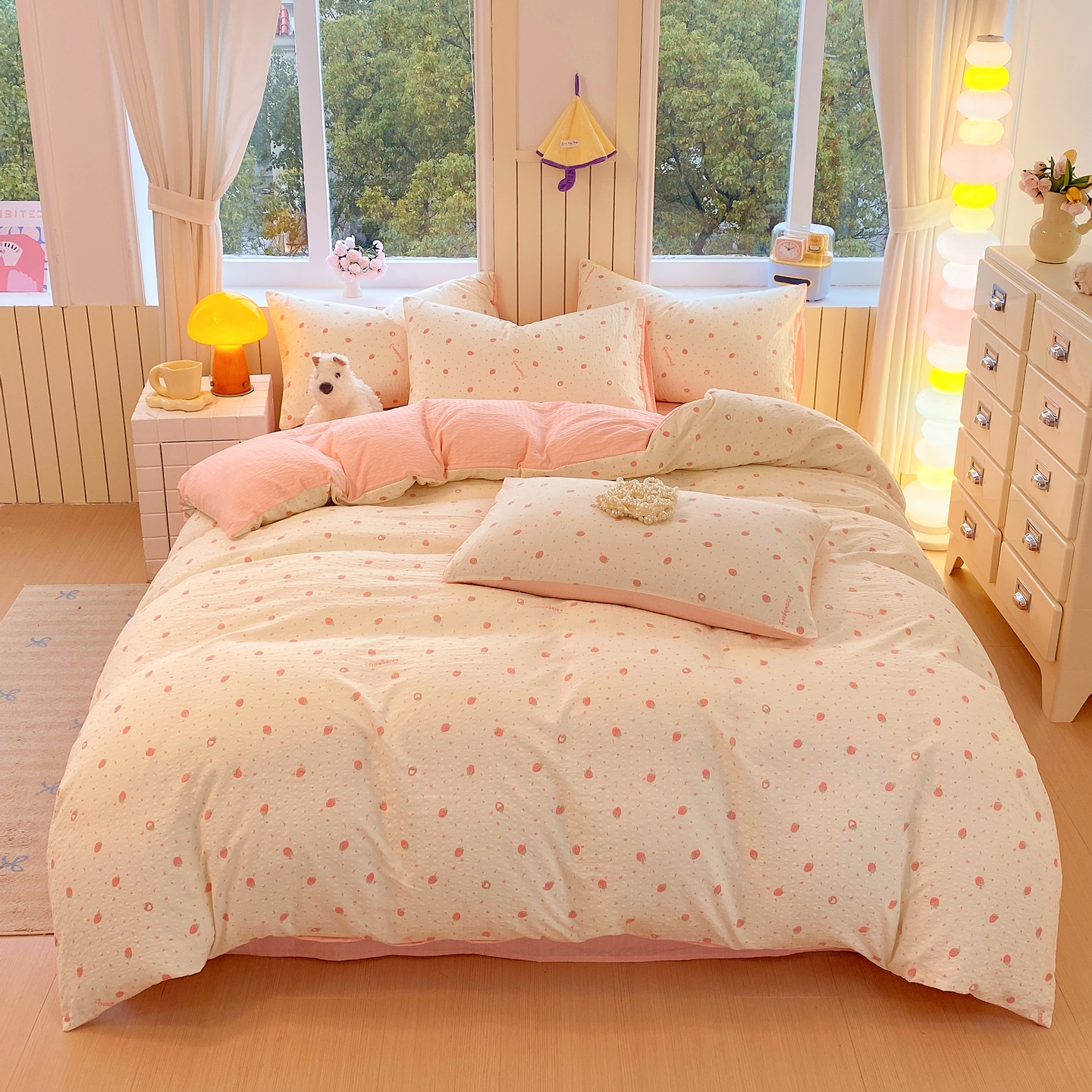 当前位置: 91家纺网 > 商品网购 > 床品套件 > 四件套 > 其它四件套 > 爱橙家纺(原艾橙家纺) 2026春夏新款A类高品质110克超柔泡芙纱四件套 玫瑰小熊