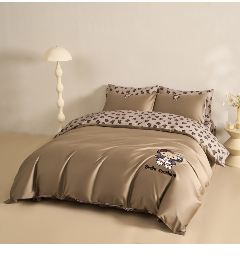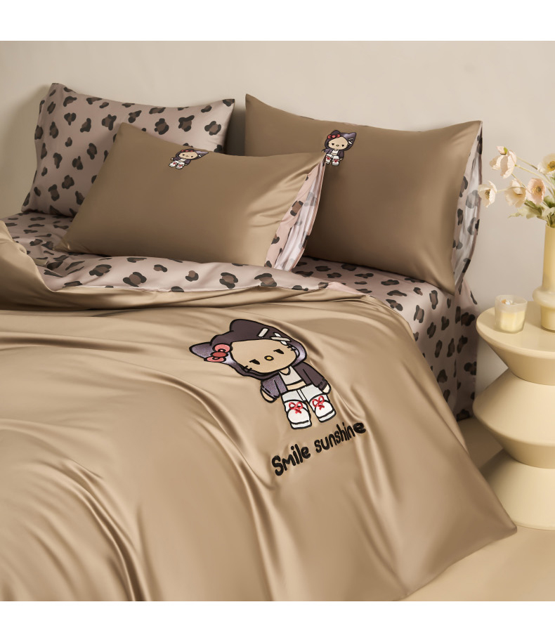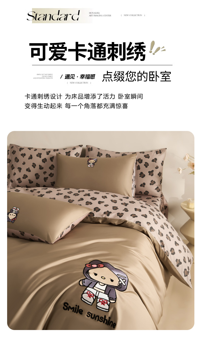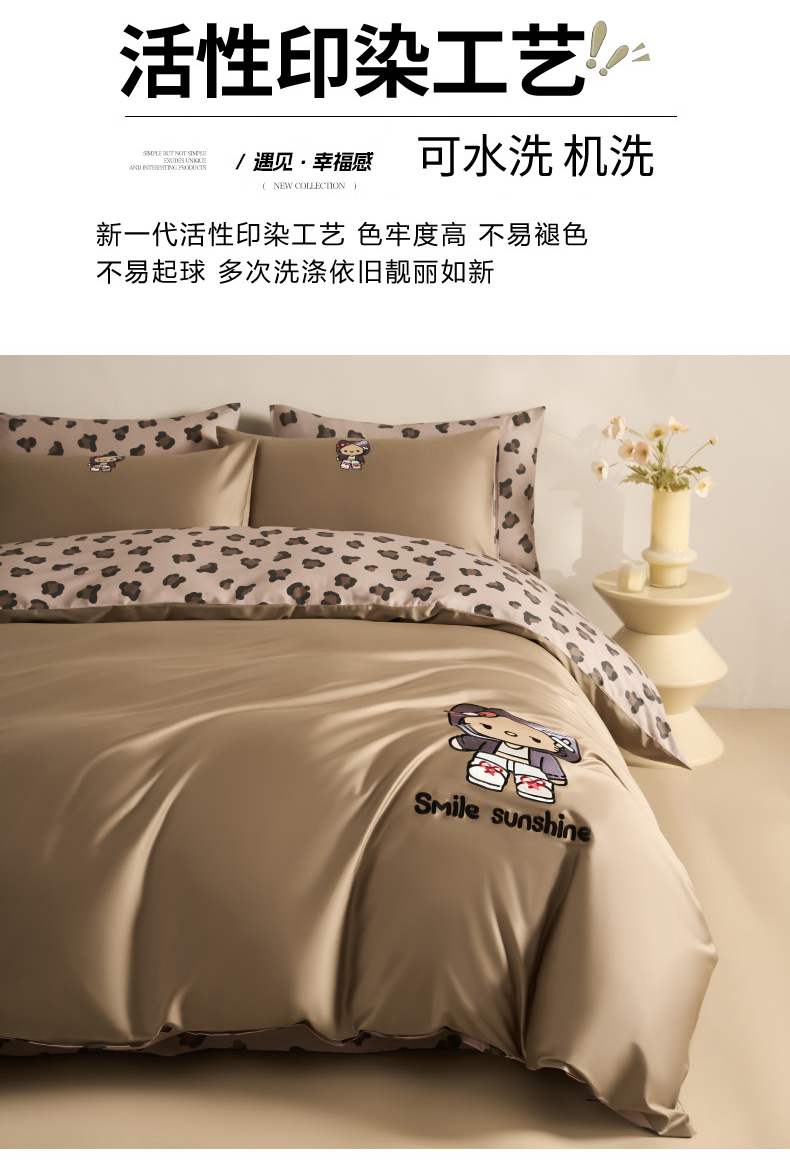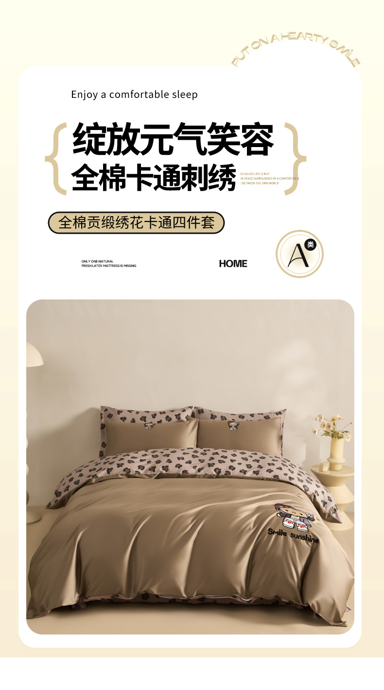 当前位置: 91家纺网 > 商品网购 > 床品套件 > 四件套 > 全棉普通四件套 > 慕尚家纺 2026春夏新款全棉纯棉50s贡缎绣花四件套 小喵咖豹纹