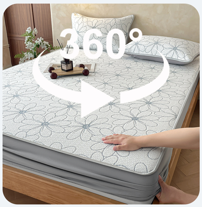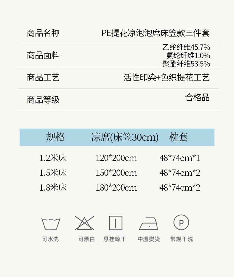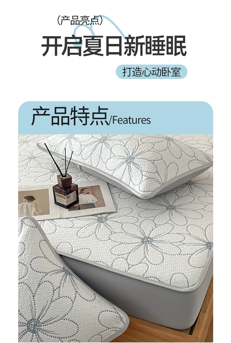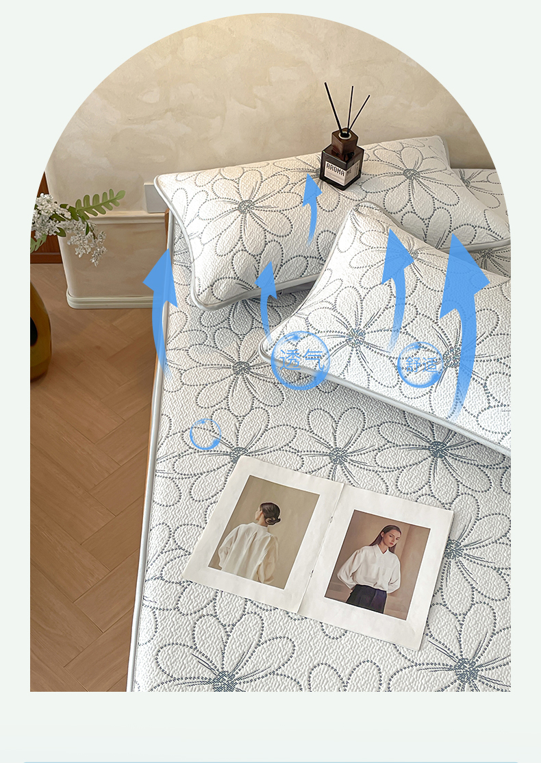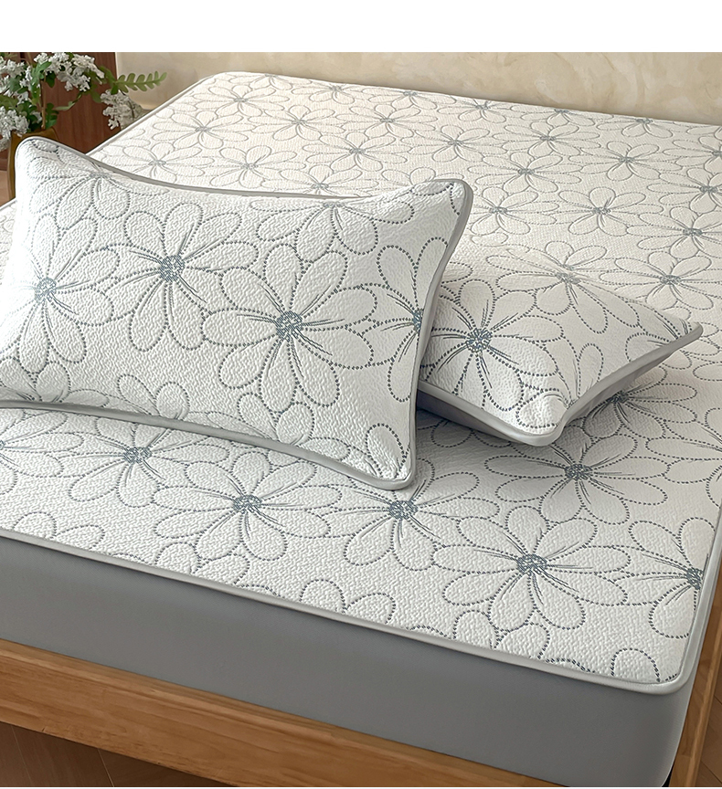 商品名称:羚羊语家纺 2026新款PE提花凉泡泡席床笠款460克冰萃席凉豆豆夏季几何轻奢凉感软席子三件套【配包装】 冰萃席-花沁