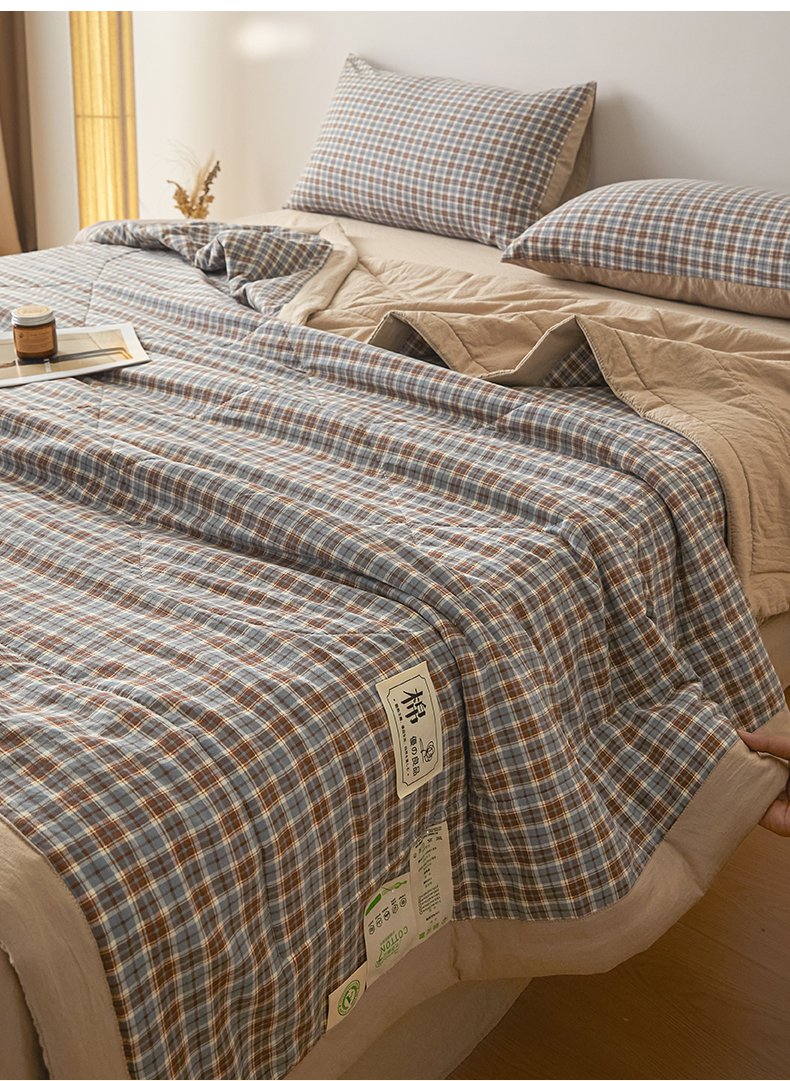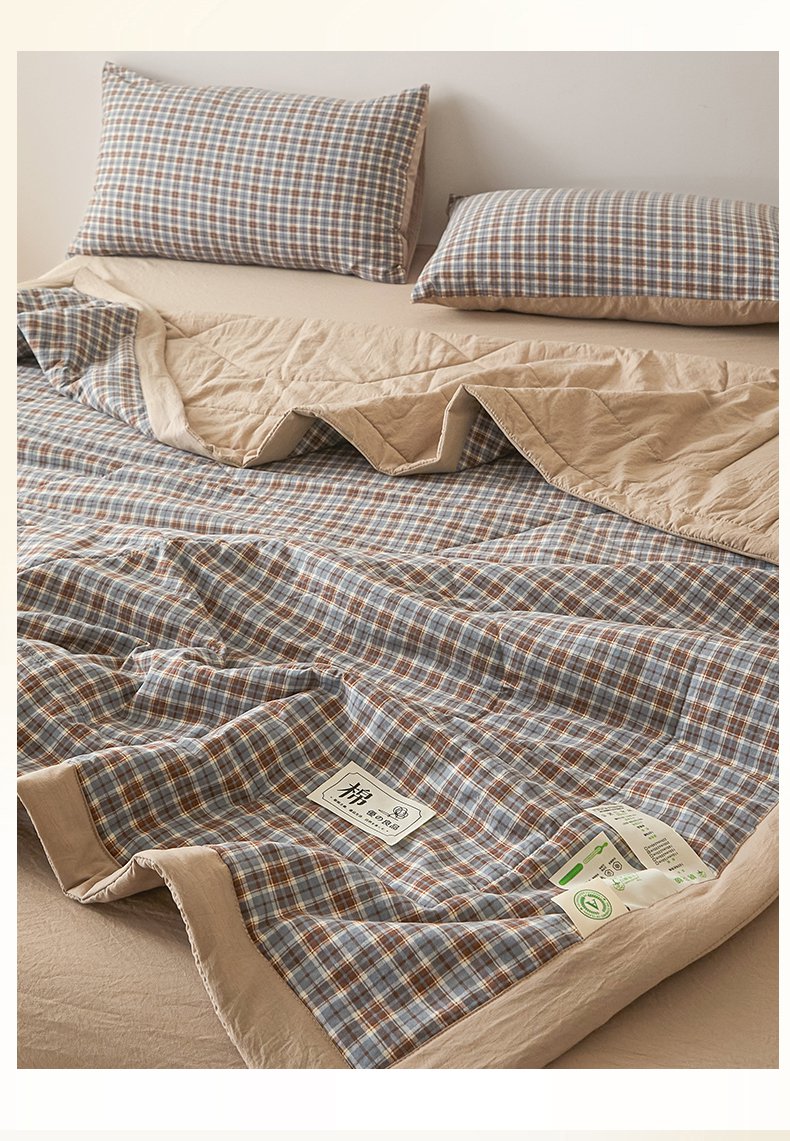 (总)寐眠 2023新款全棉色织水洗棉儿童夏被,粉大格,粉小格,灰白格,蓝大格,蓝小格,雾蓝格,小粉格