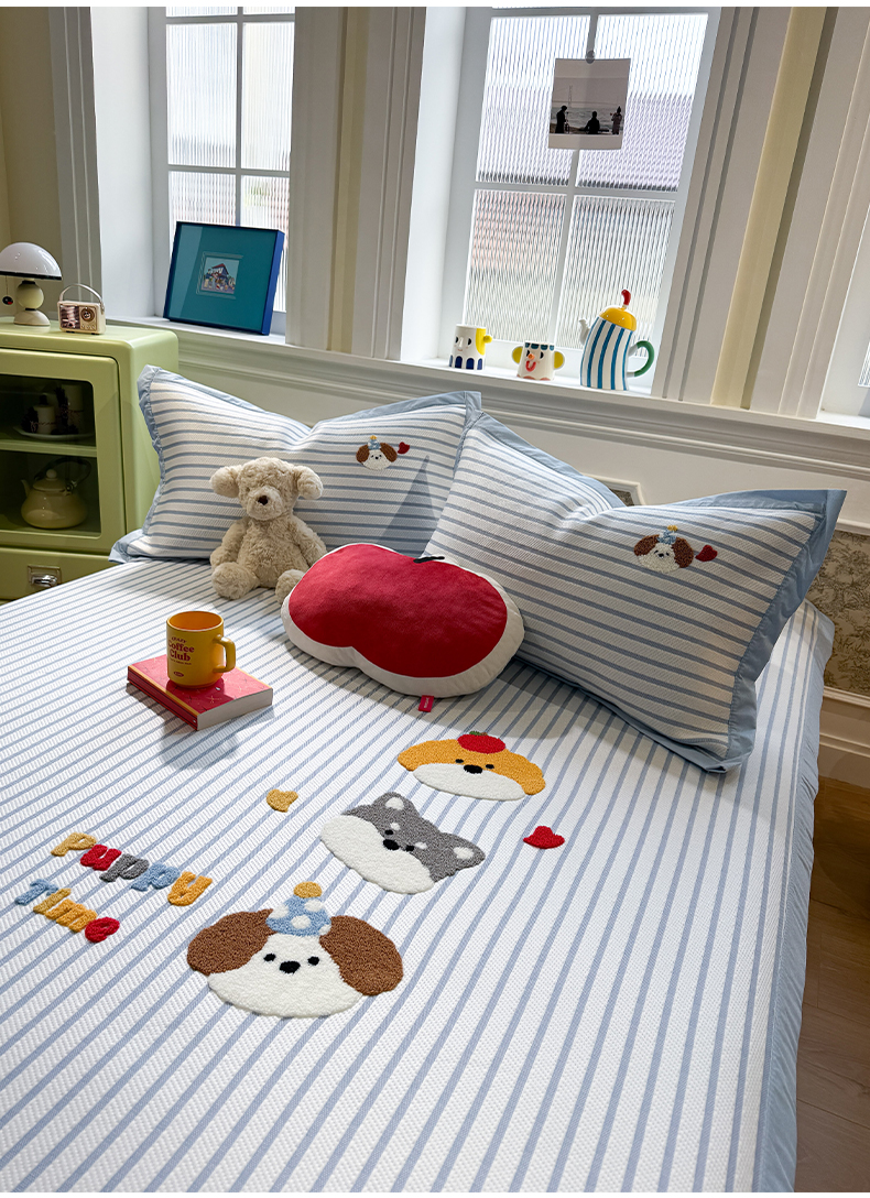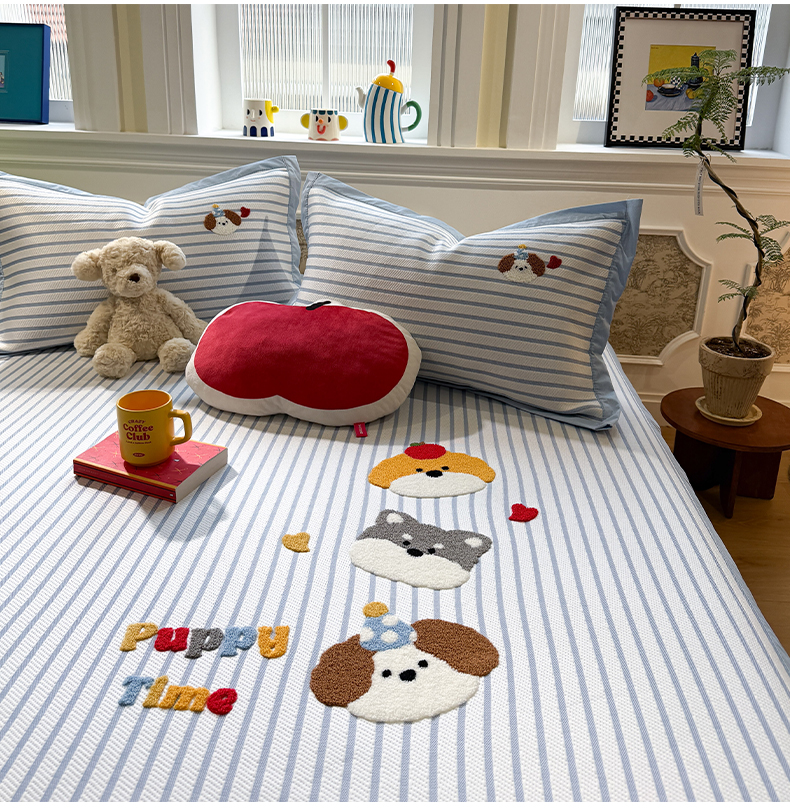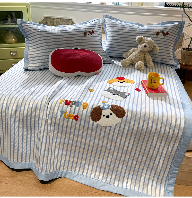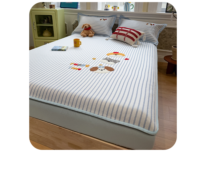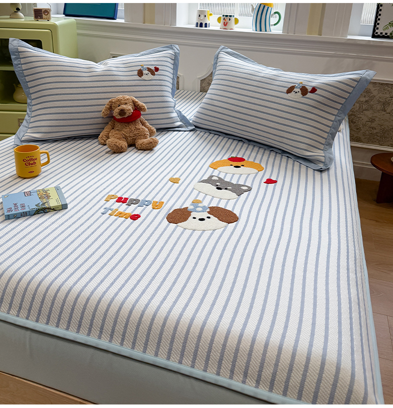 雅居纺家纺 2026春夏新款PE凉感提花绣花凉席席子 平席-狗狗家族