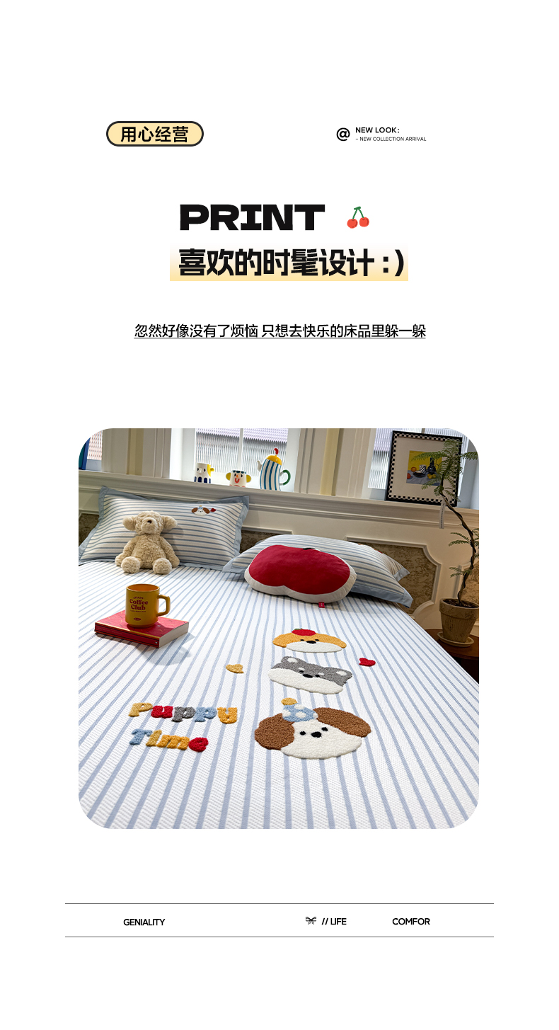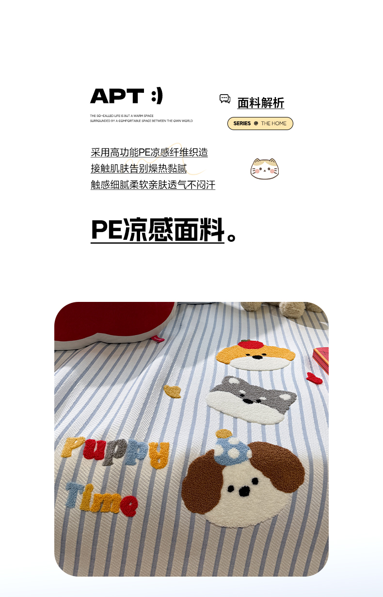 商品名称:雅居纺家纺 2026春夏新款PE凉感提花绣花凉席席子 平席-狗狗家族