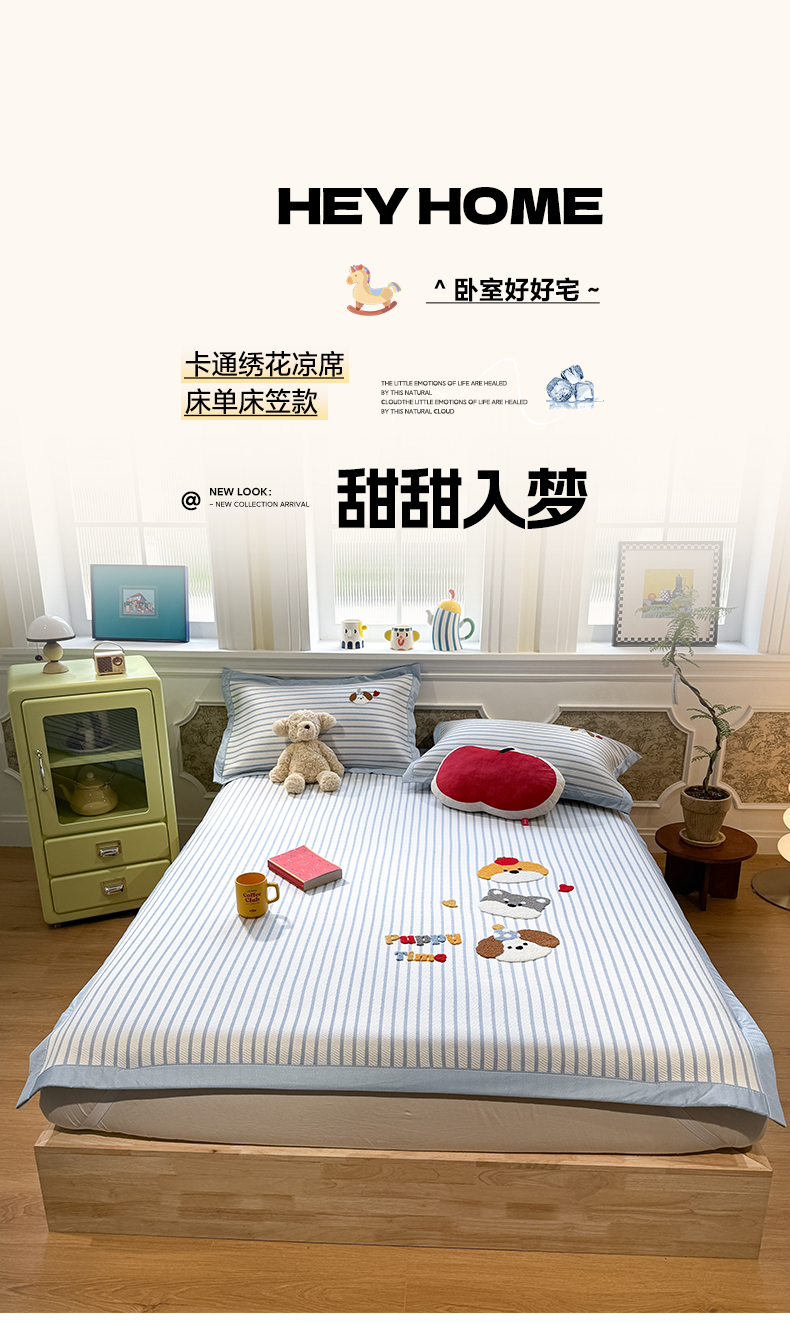 (总)雅居纺家纺 2026春夏新款PE凉感提花绣花凉席席子,平席-爱恋猫咪,平席-粉条苹果猫咪,平席-狗狗家族,平席-灰条开心狗,平席-蓝条狗狗,平席-马上有钱,床笠款-爱恋猫咪,床笠款-粉条苹果猫咪,床笠款-狗狗家族,床笠款-灰条开心狗,床笠款-蓝条狗狗,床笠款-马上有钱