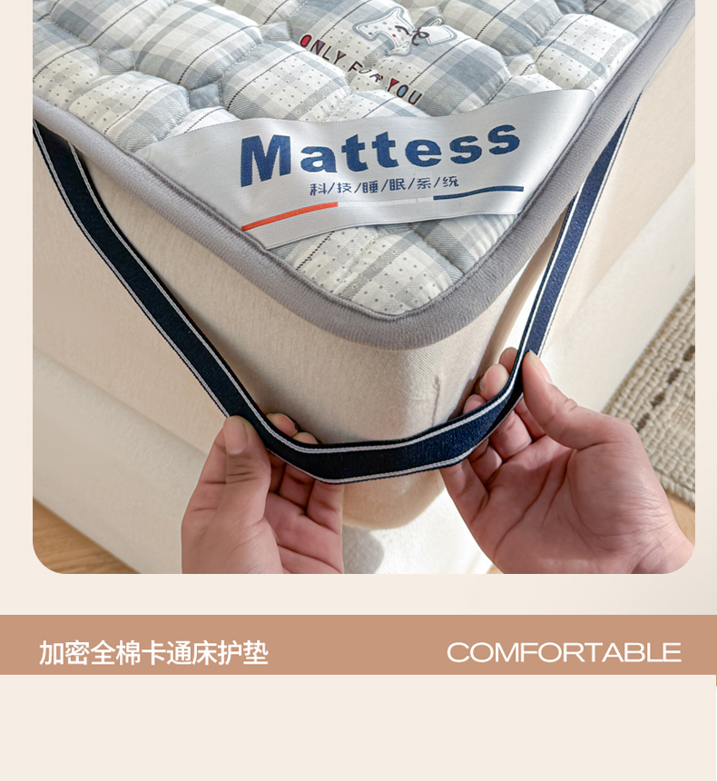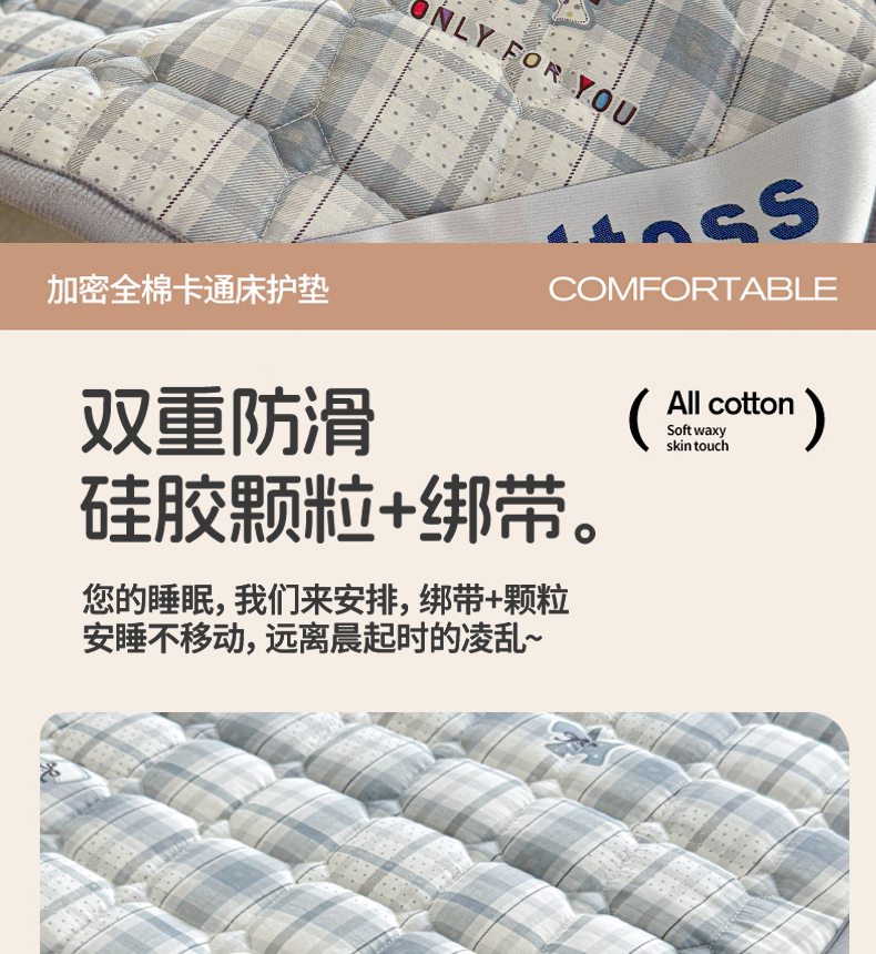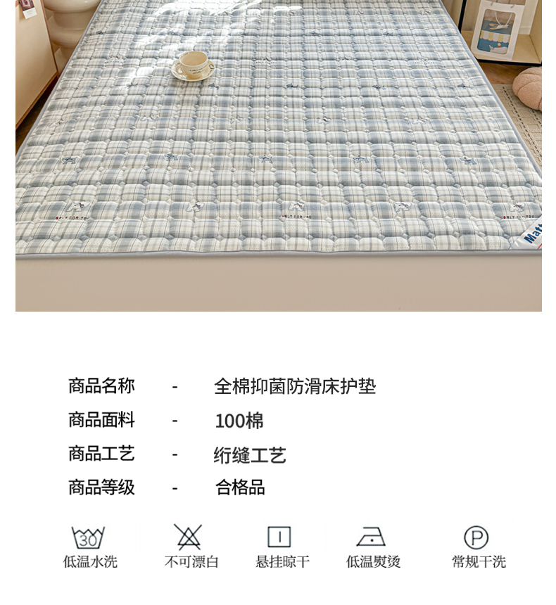 (总)丽诺床垫 2024新款升级款全棉13372抗菌防滑床护垫,灰色,玉色 ,卡其色 ,秋蓝,白色