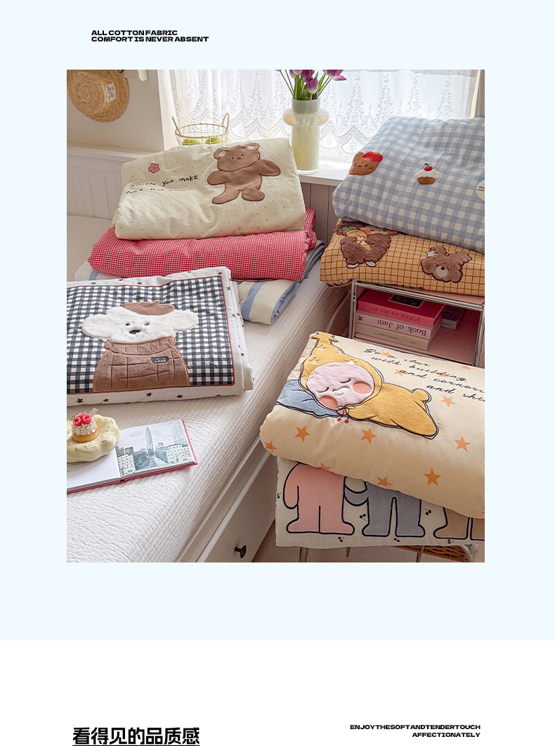 (总)暖生活 2026新款工艺款全棉水洗棉夏被四件套夏凉被空调被,组合图仅做展示不可下单,快乐小熊,萌宝星星,木马小咪,三伙伴,绅士小狗,甜品猫咪,晚安星星,小树喵