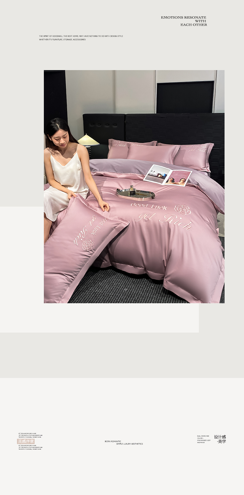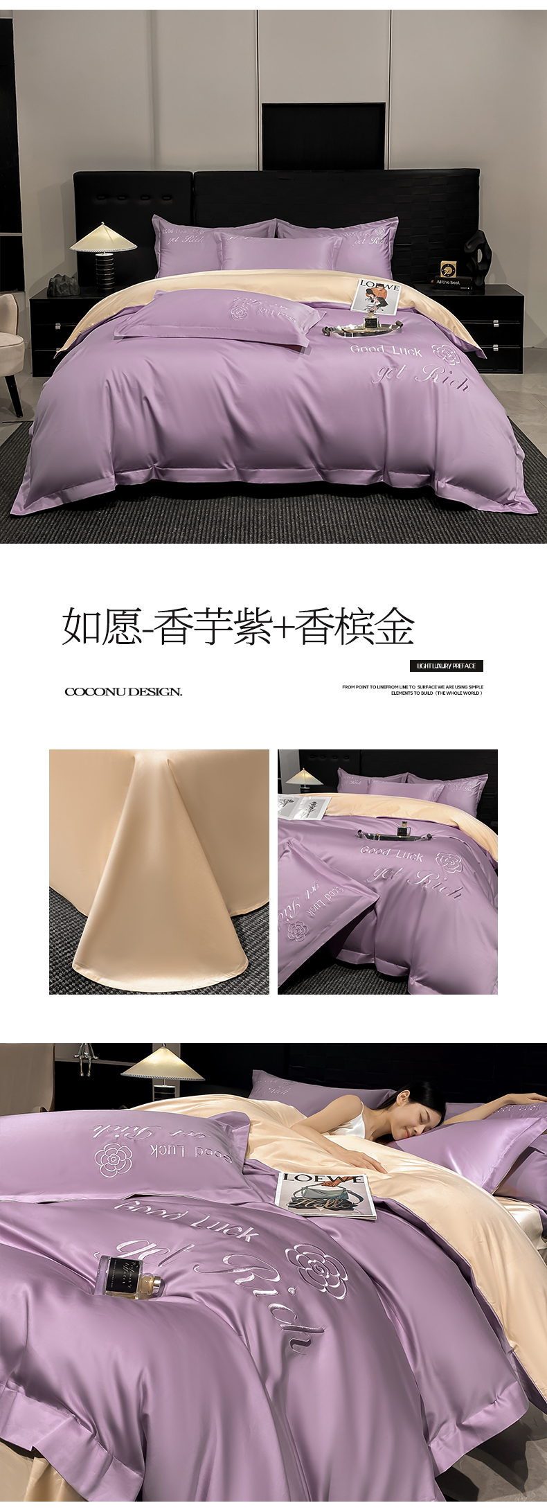 当前位置: 91家纺网 > 商品网购 > 床品套件 > 四件套 > 全棉普通四件套 > 润锦云 2026新款100s全棉长绒棉纯棉刺绣四件套-如愿 如愿-芙蓉粉+星黛紫