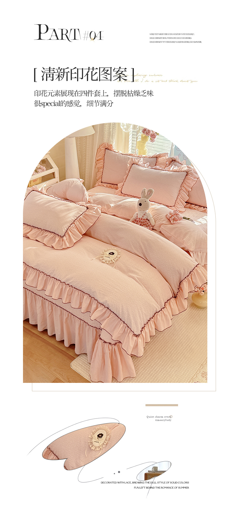 商品名称:苏米娜家纺SUMINA 2026春夏超柔云朵棉夏被床盖款四件套-安妮系列 安妮-松雪粉