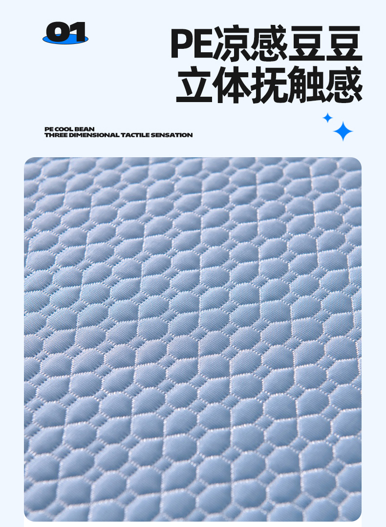 商品名称:梵克保罗 2026春夏新款PE中分子凉席三件套纯色平铺豆豆席凉席席子-四叶草系列 四叶草-月光蓝