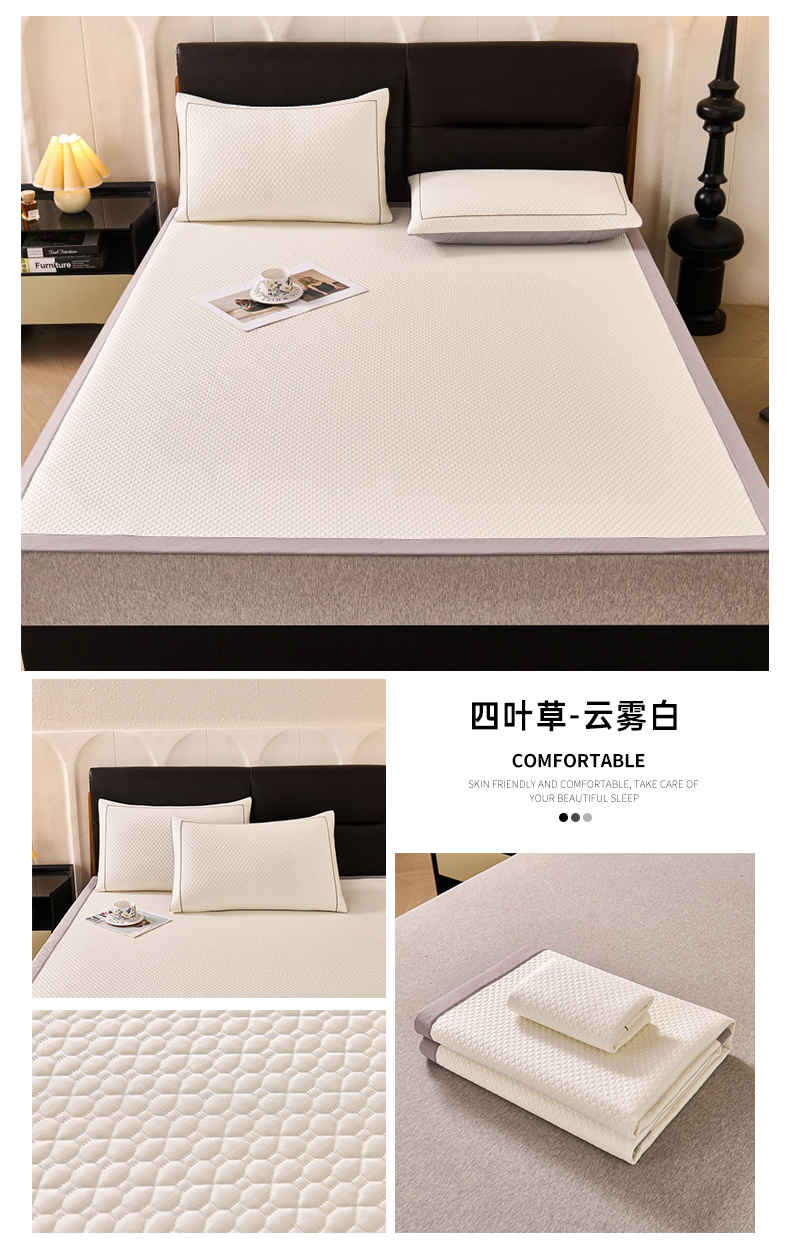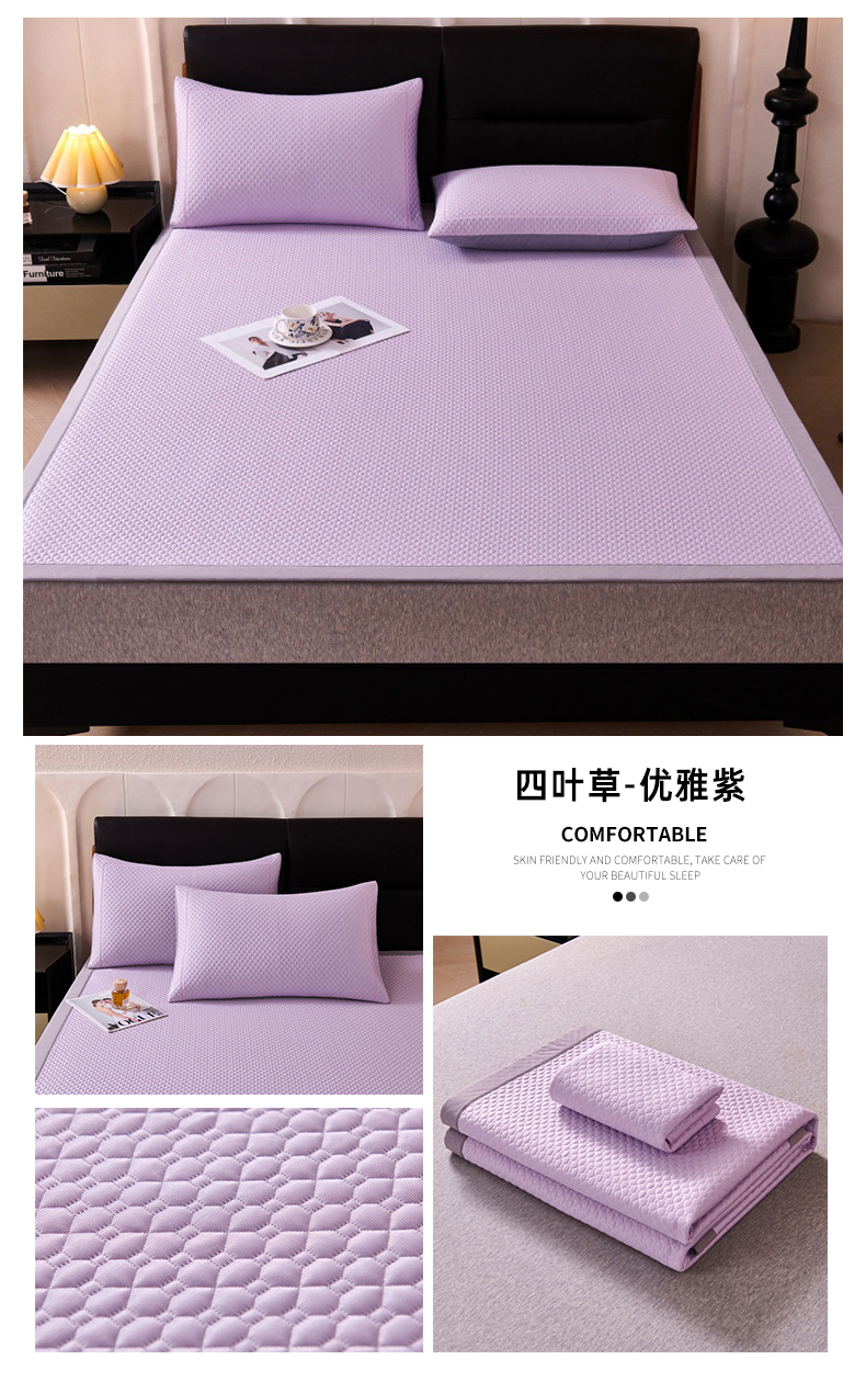 (总)梵克保罗 2026春夏新款PE中分子凉席三件套纯色平铺豆豆席凉席席子-四叶草系列,四叶草-高雅灰,四叶草-蜜桃粉,四叶草-清新绿,四叶草-香槟金,四叶草-优雅紫,四叶草-月光蓝,四叶草-云雾白