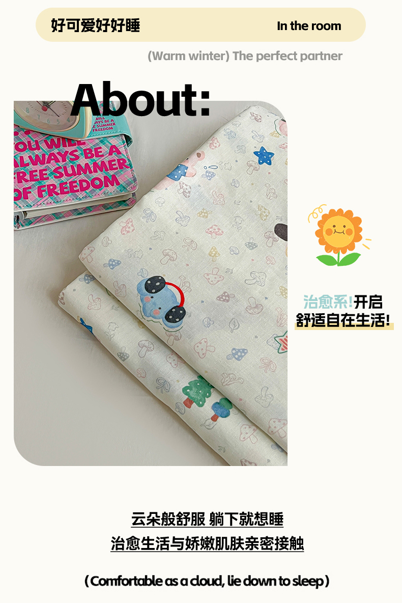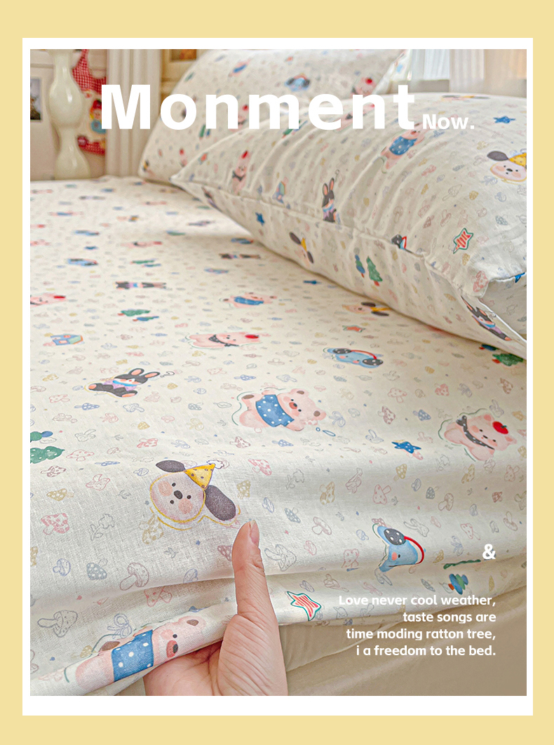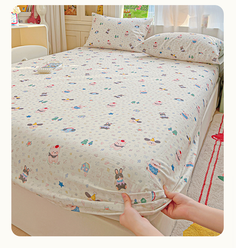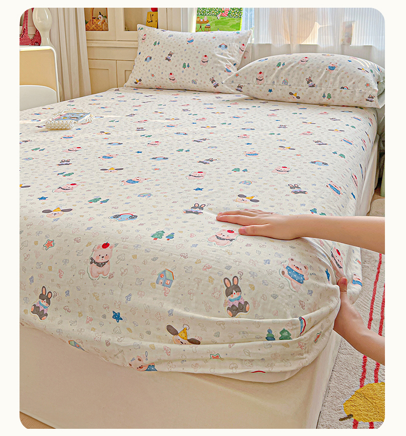 • 91家纺网 家纺一手货源 找家纺 名兮家居 2026新款全棉纯棉A类卡通时尚风双层纱床笠单品床笠床笠单件 双层纱-蘑菇屋
