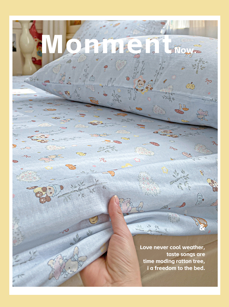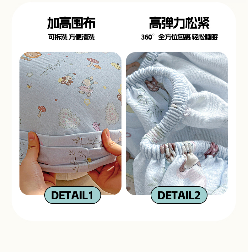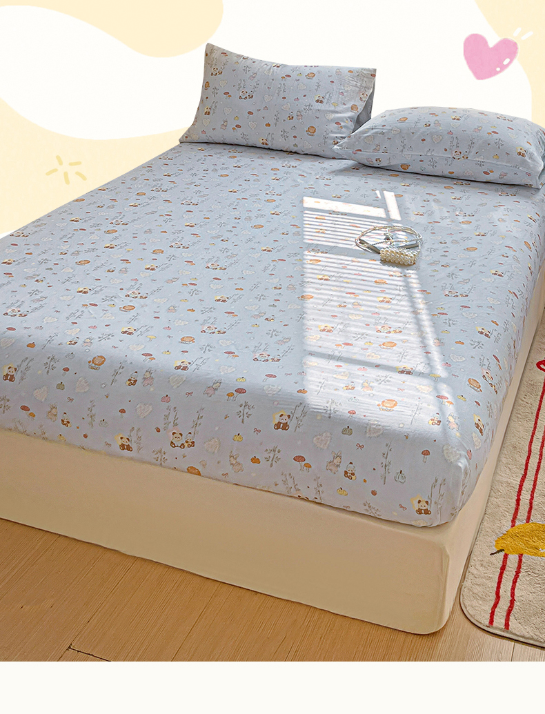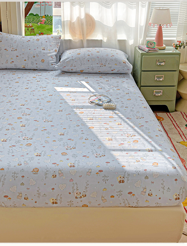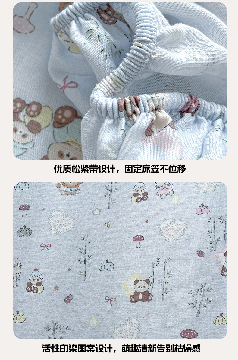 • 91家纺网 家纺一手货源 找家纺 名兮家居 2026新款全棉纯棉A类卡通时尚风双层纱床笠单品床笠床笠单件 双层纱-竹林派对