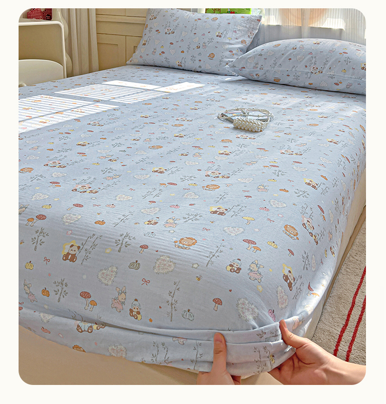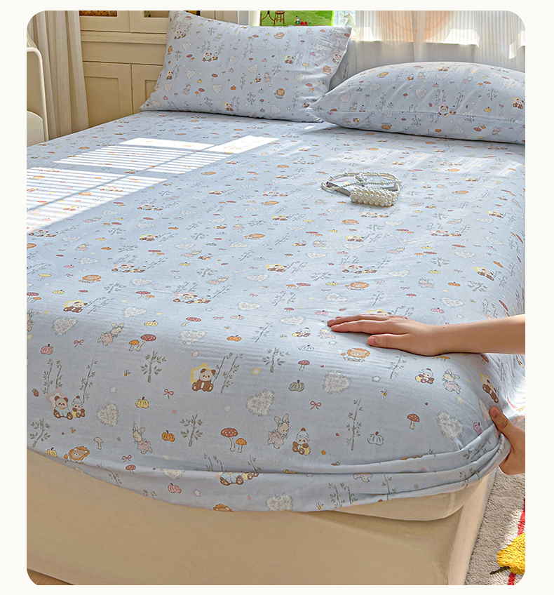 名兮家居 2026新款全棉纯棉A类卡通时尚风双层纱床笠单品床笠床笠单件 双层纱-竹林派对