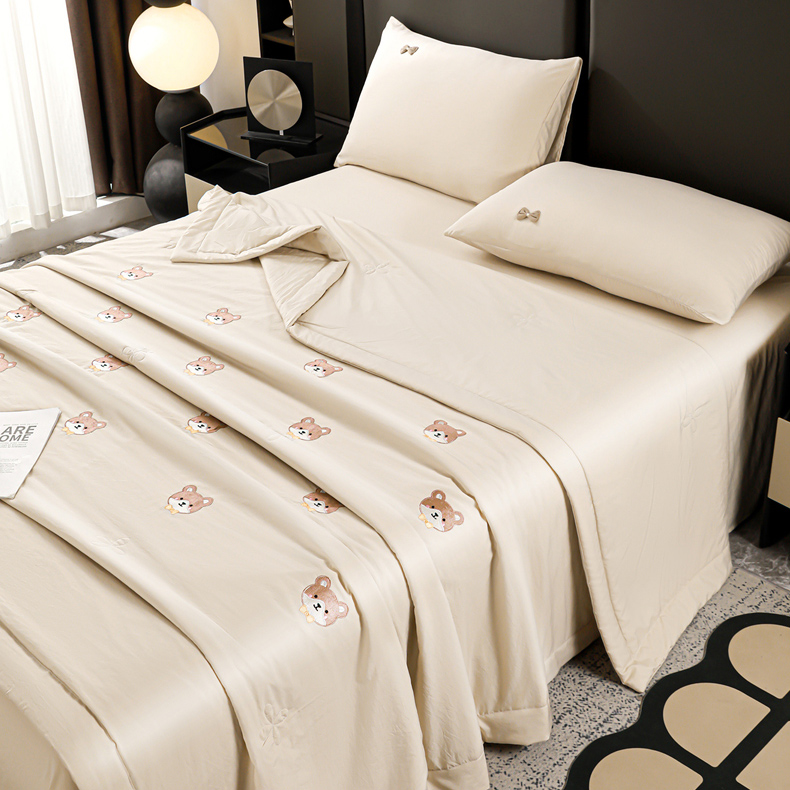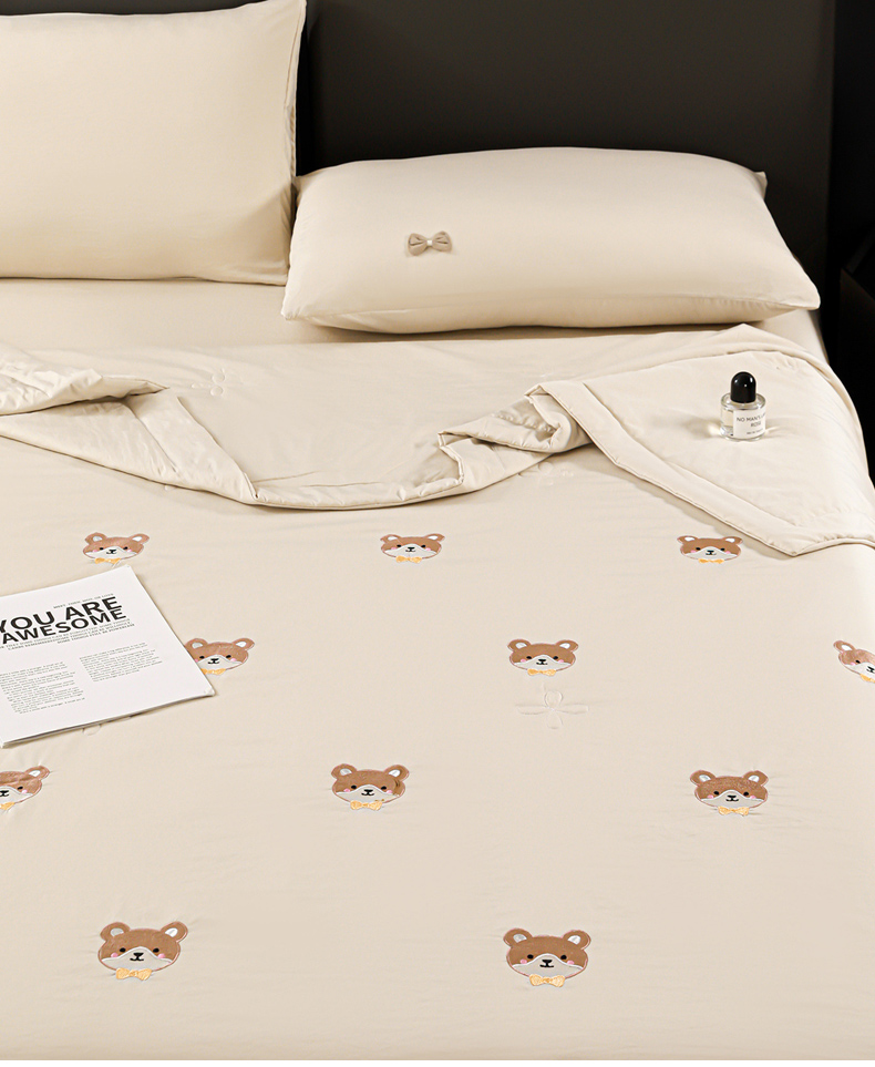 佳鸿家纺 2026新款A类凉感冰柔丝刺绣手包边夏凉被夏被四件套 提供质检报告 奶咖小熊
