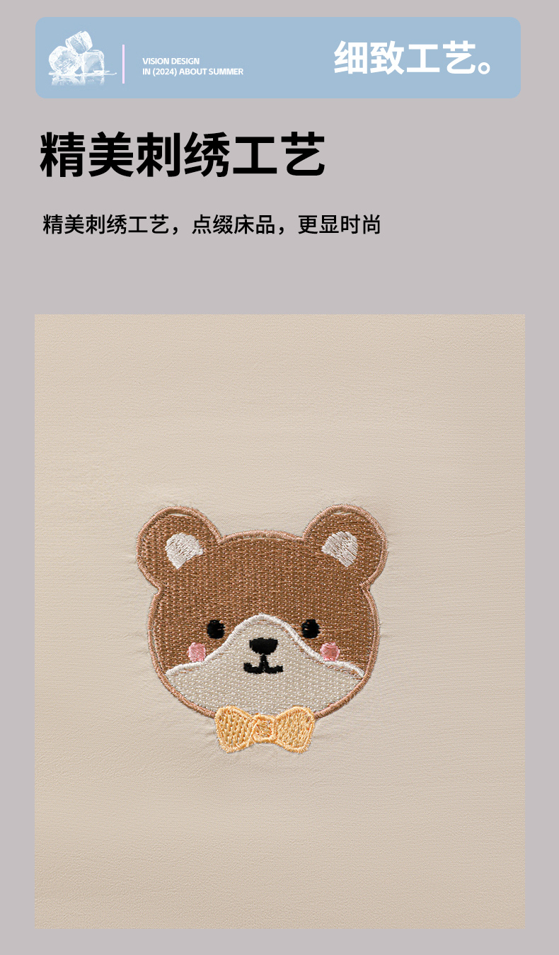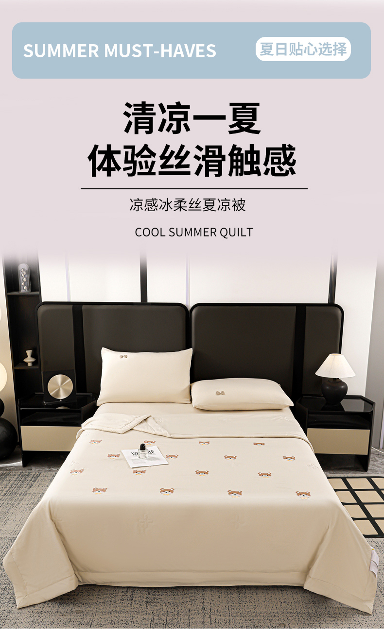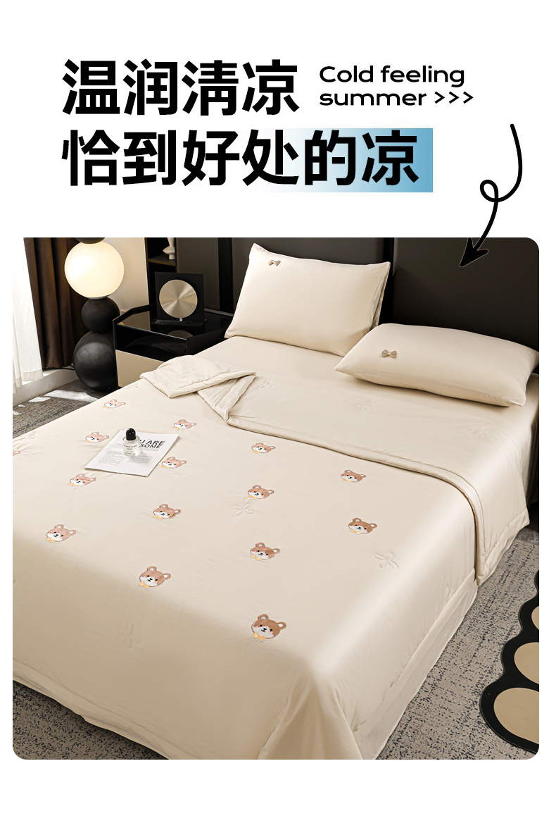 • 91家纺网 家纺一手货源 找家纺 佳鸿家纺 2026新款A类凉感冰柔丝刺绣手包边夏凉被夏被四件套 提供质检报告 奶咖小熊