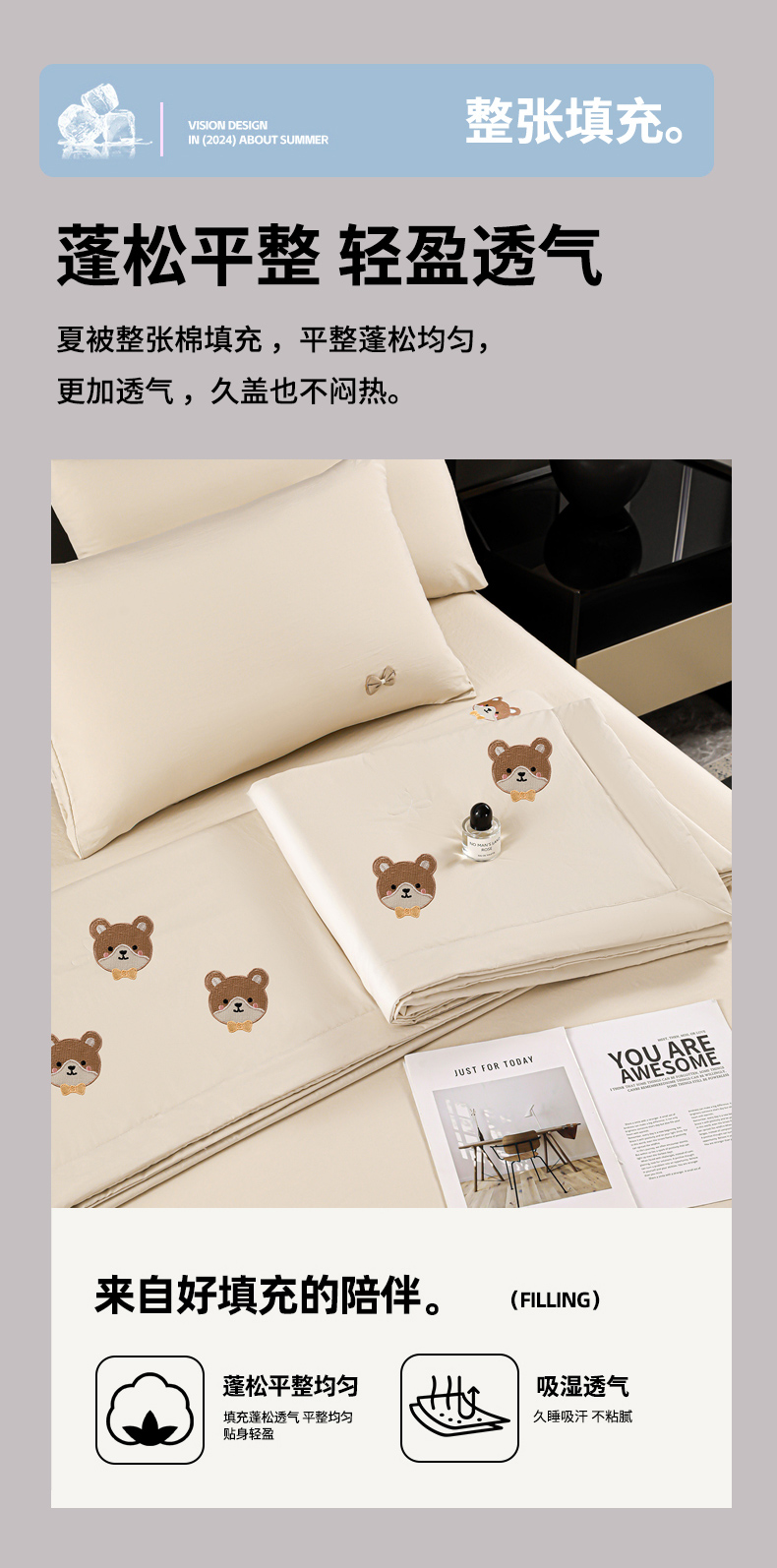 • 适用季节: 空调被/夏凉被