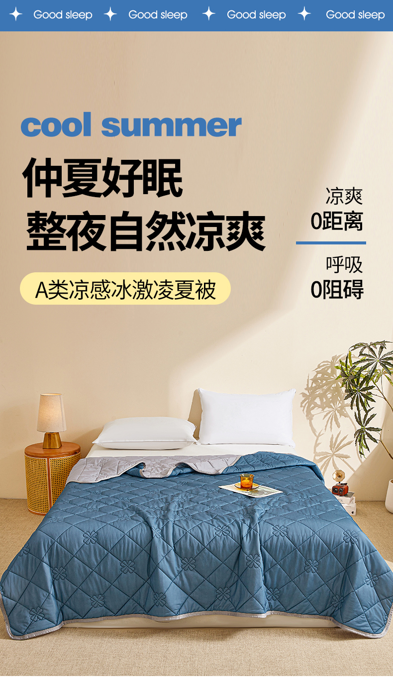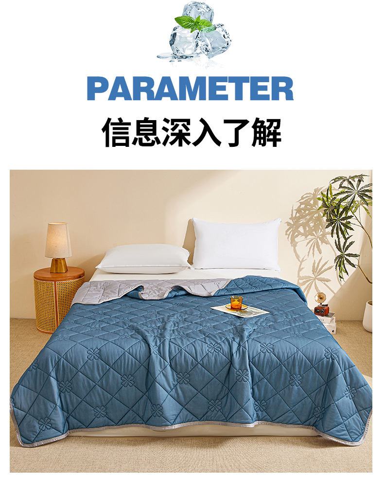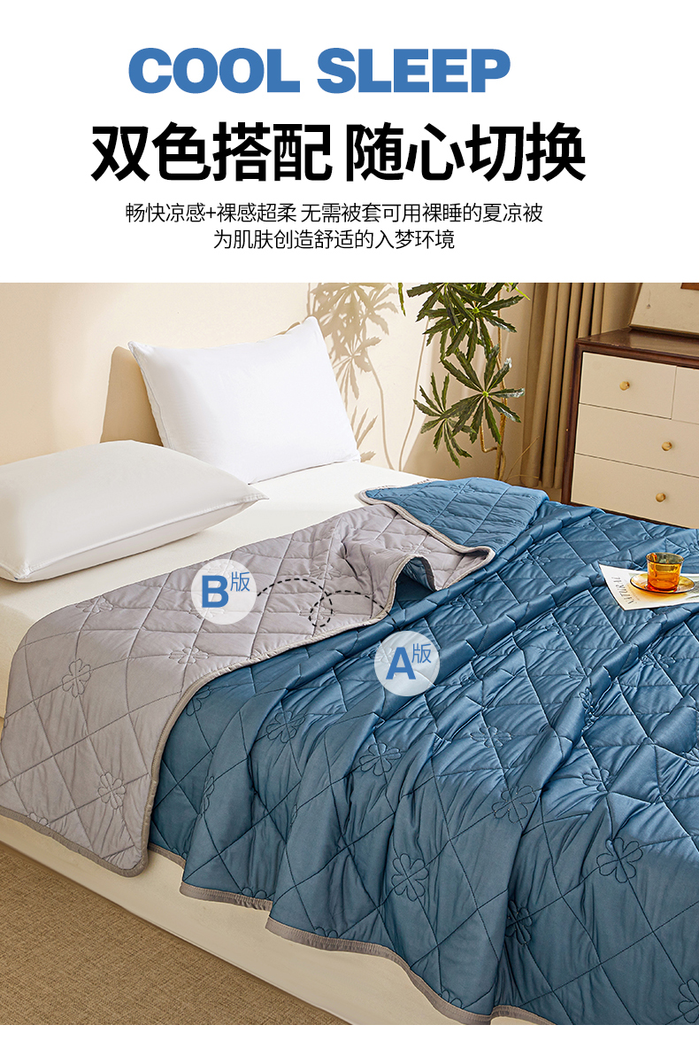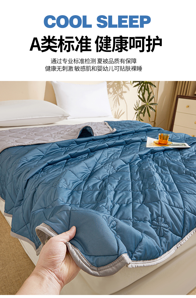 魅图家纺 2026新款跨境A类凉感丝夏被-中文版 双拼-深睡蓝