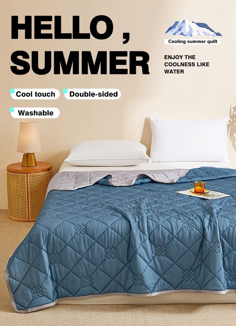 魅图家纺 2026新款跨境A类凉感丝夏被-英文版 双拼 深睡蓝