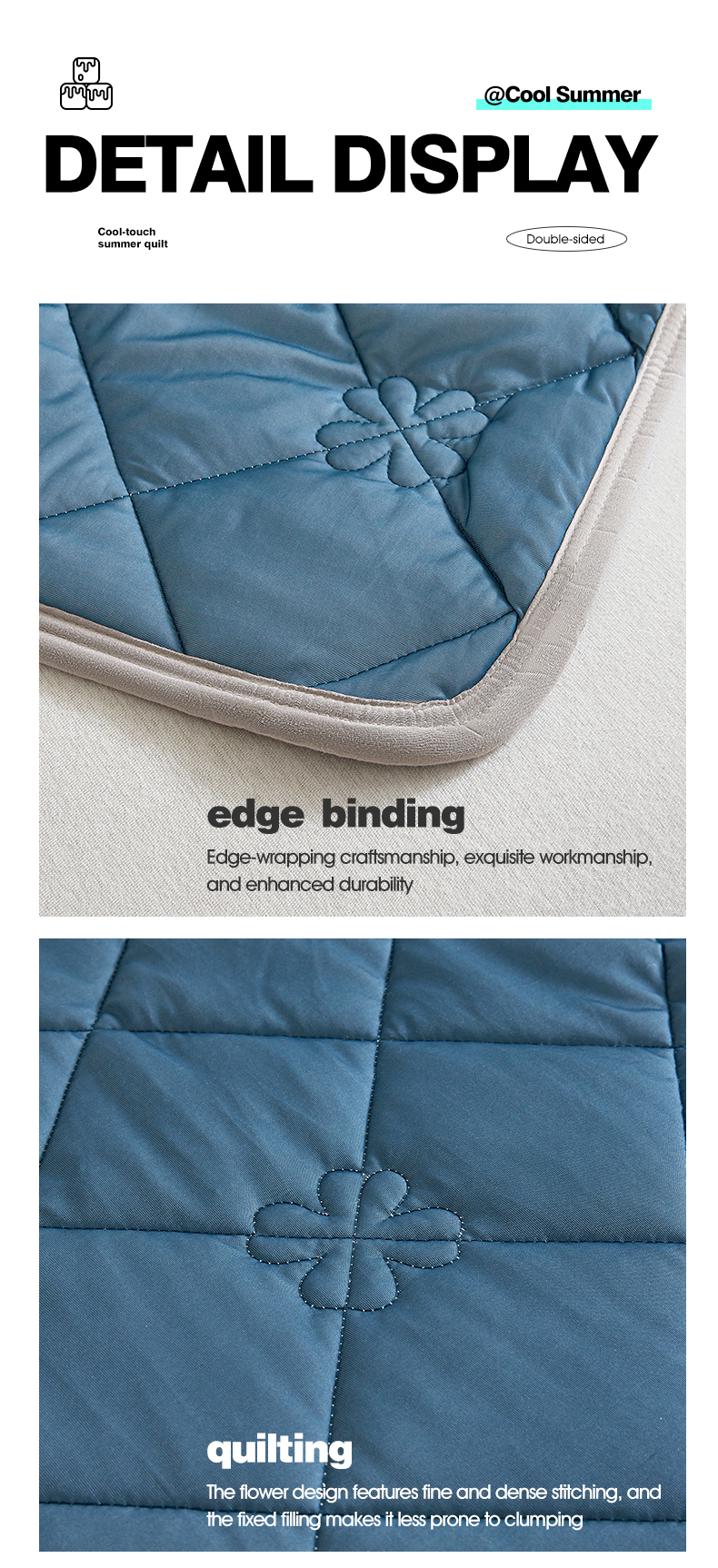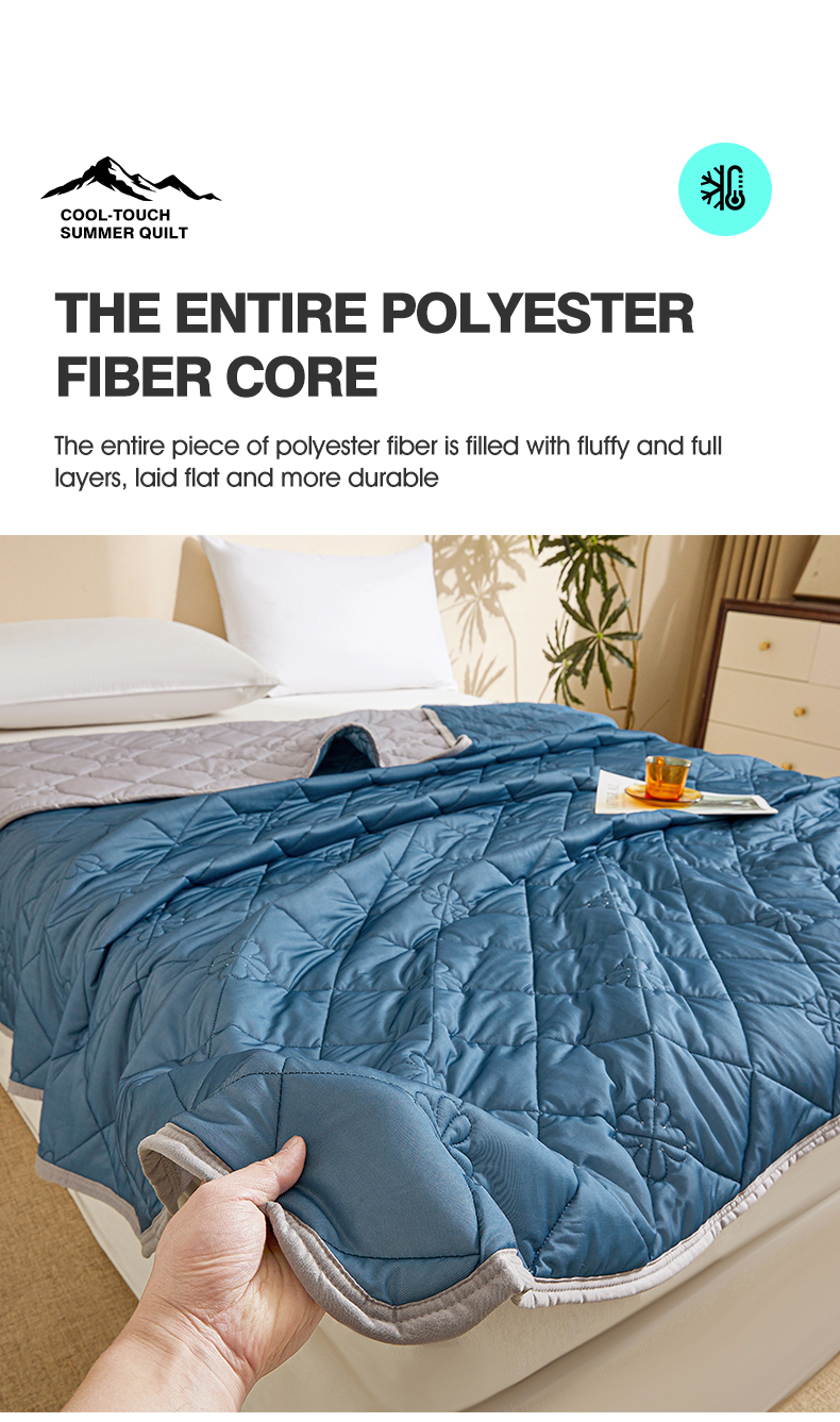 商品名称:魅图家纺 2026新款跨境A类凉感丝夏被-英文版 双拼 深睡蓝