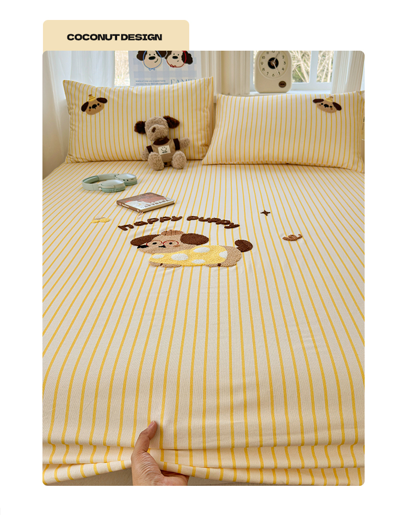 (总)沐棉家居 2026新款毛巾绣老粗布全棉纯棉床笠单品床笠单件,豹纹巴拉,波点狗,条纹巴拉,洗澡巴拉,幸福狗